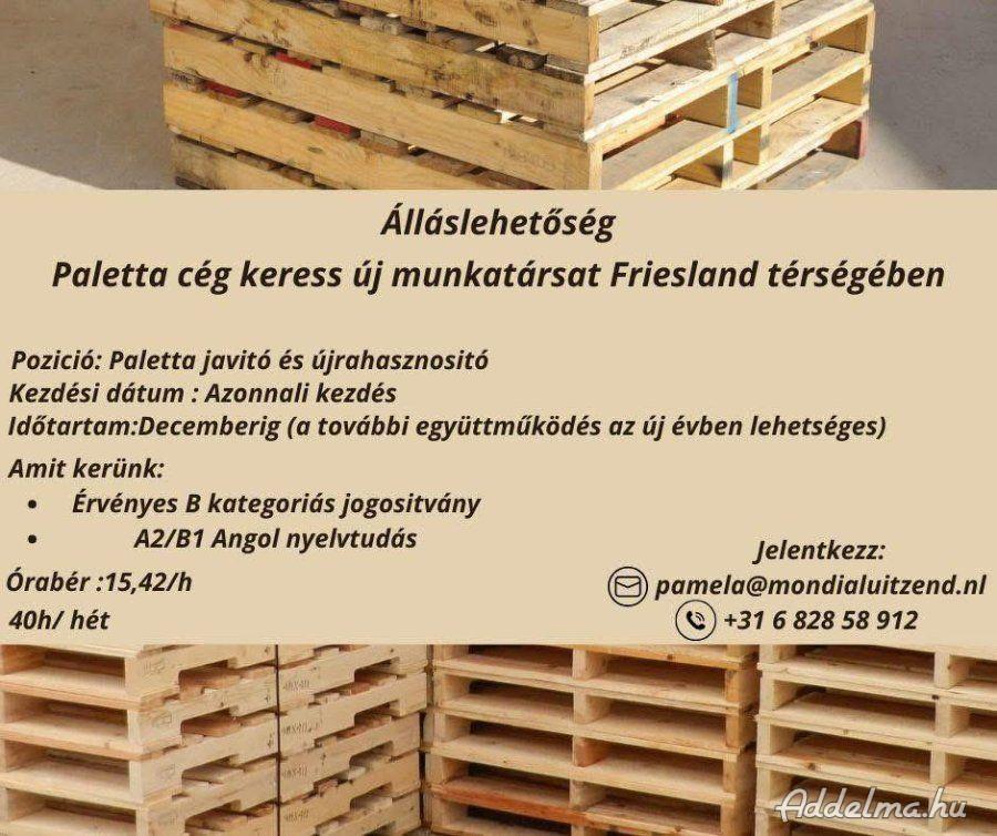 Paletta cég keress lelkes munkatársat Friesland térségében.
