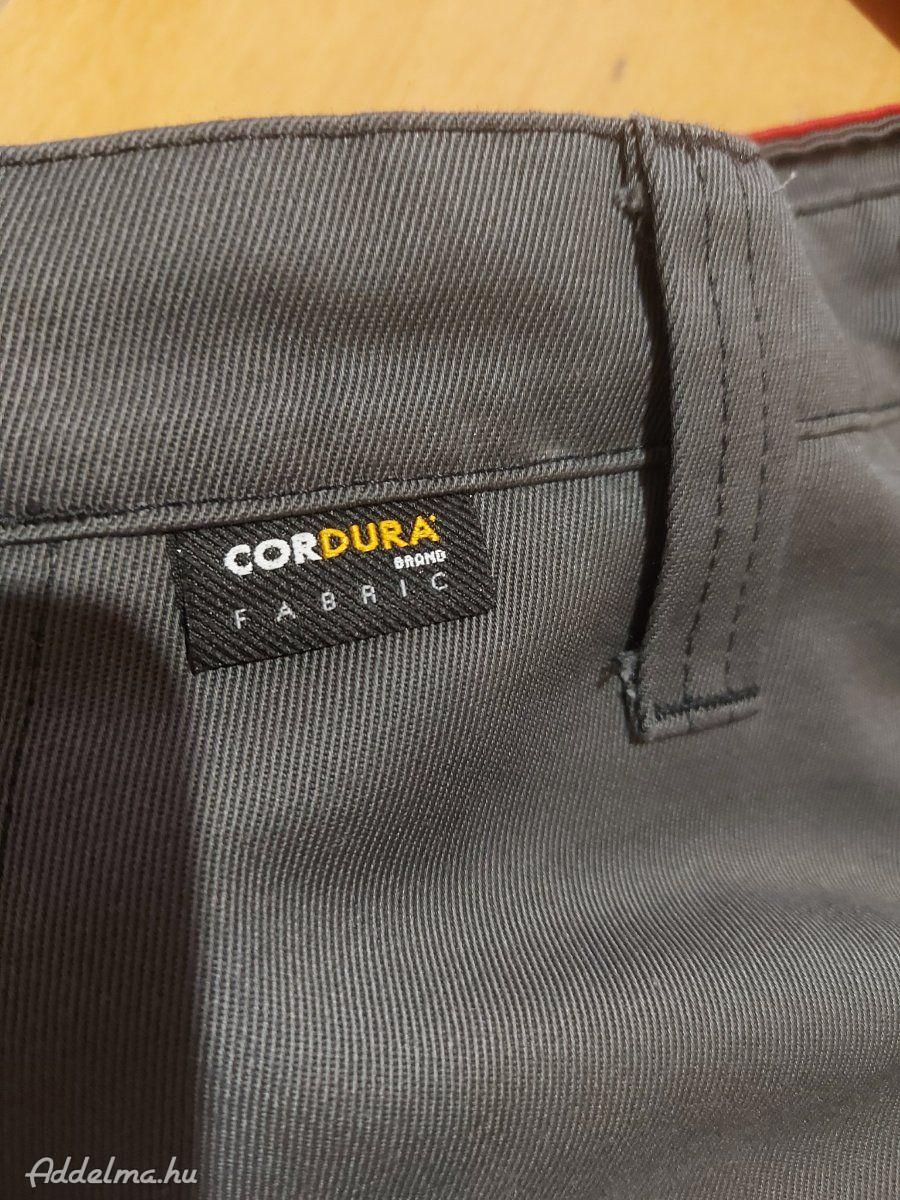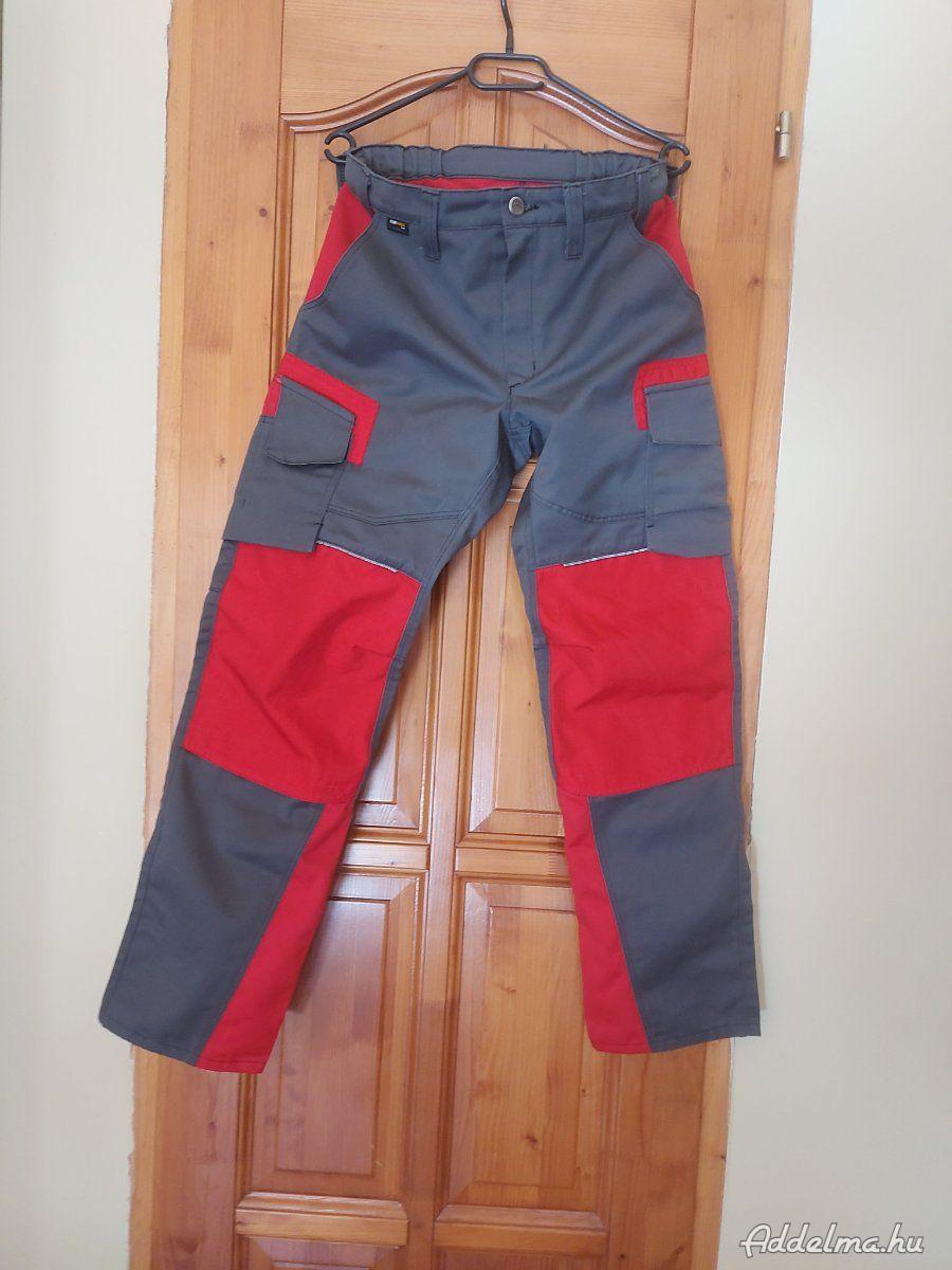 szürke-piros színű, munkavédelmi hosszú nadrág.