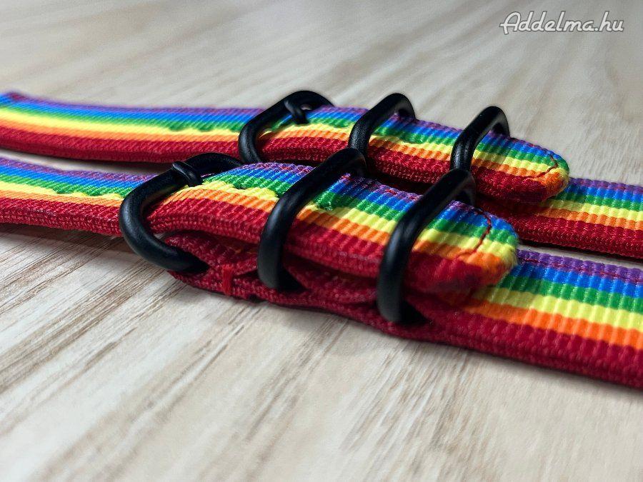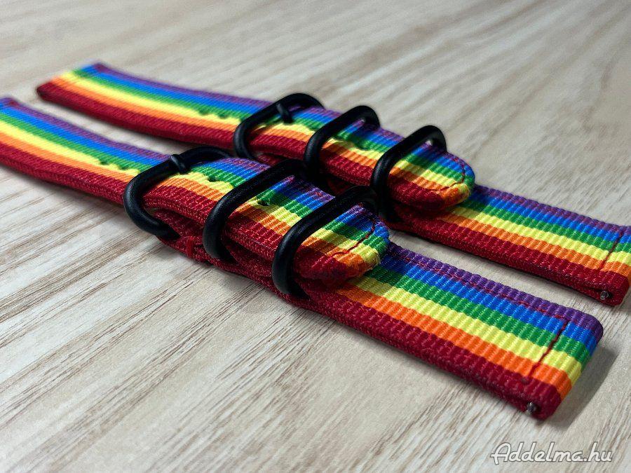 Tűnj ki a tömegből ezzel a stílusos, 20 mm-es szivárvány színű kétrészes NATO óraszíjjal! A vibráló, sokszínű dizájn a szabadságot, az önkifejezést és a pozitív energiát sugározza – tökéletes választás, ha szereted, hogy a kiegészítőidnek is van személyisége.