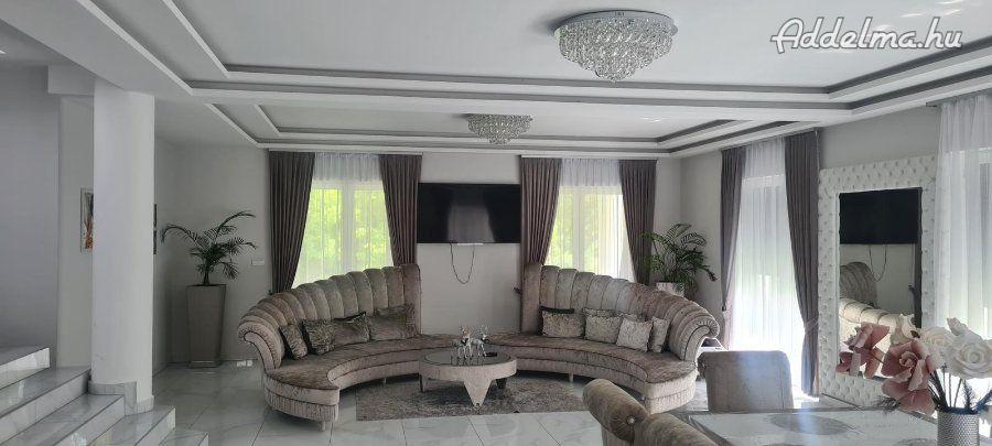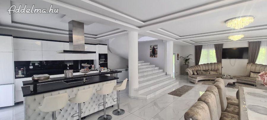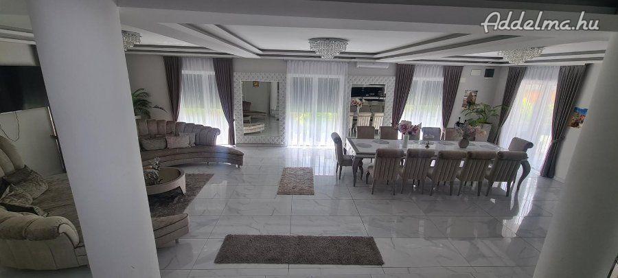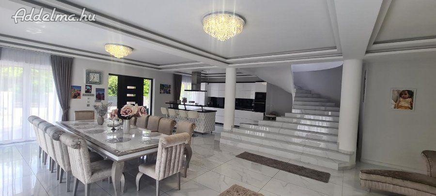 Római fürdő egyik kedvelt utcájában kínálok eladásra egy igényes kivitelezésű gyönyörű családi házat mely egy gondozott 823m2-es sík telken kapott helyet. Ház magas minőségű anyagokból épült, kellően átgondolt életterek jellemzik, a luxus és az elegancia találkozik. 2022-ben épült minden szoba klimatizált, elektromos redőnnyel felszerelt. Az emeletre gyönyörű Carrerai márvánnyal burkolt lépcső vezet, ami amellett, hogy kényelmes igazán elegáns megjelenést sugároz. Emeleten közös nappalin kívül 3 tágas szoba, mindhárom terasz kapcsolatos és külön mellékhelyiséggel rendelkezik. Gyönyörű kert parkosított, füvesített s öntözőrendszerrel ellátott. Hátsó kert remek hely grillezésre s családi összejövetelekre . Az előkert térkövezett s 6 autó számára nyújt kényelmes parkolási lehetőséget.