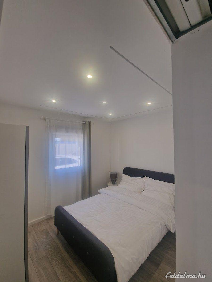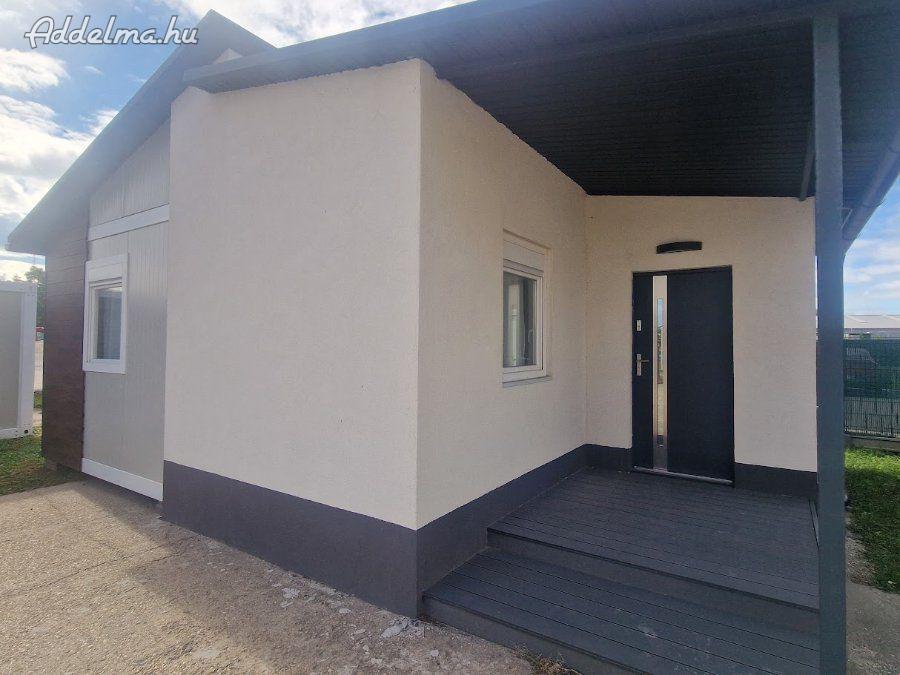 Modern, előre gyártott modulház, amely azonnal telepíthető és beköltözhető.
