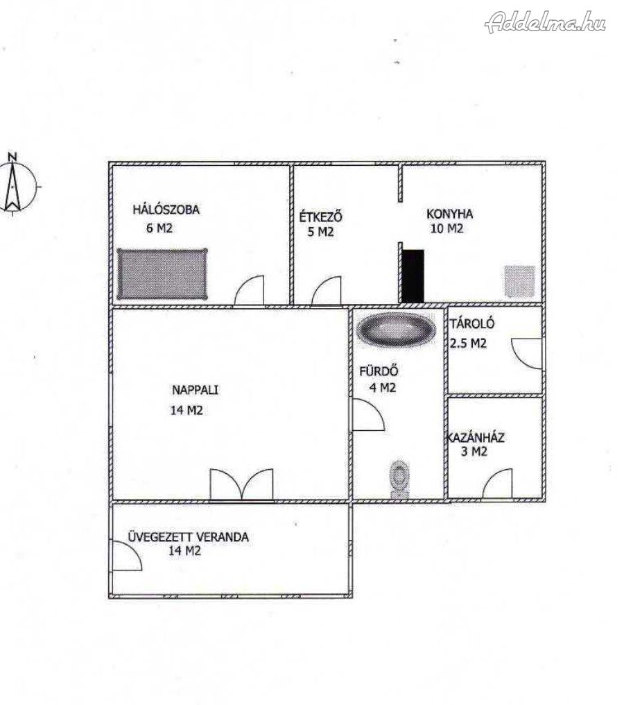 • kazánház (3 m²) és tároló (2,5 m²).