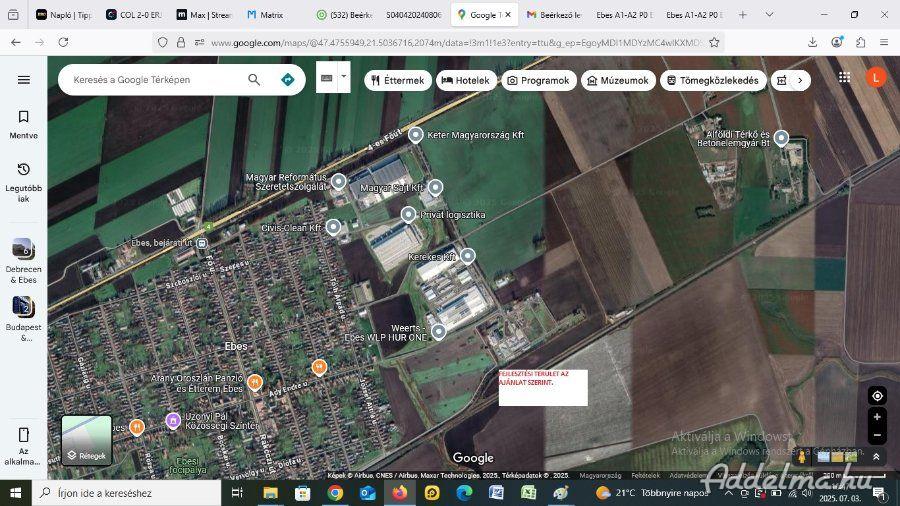 ELADÓ IPARI BESOROLÁSÚ ÉPÍTÉSI TELEK EBESEN!