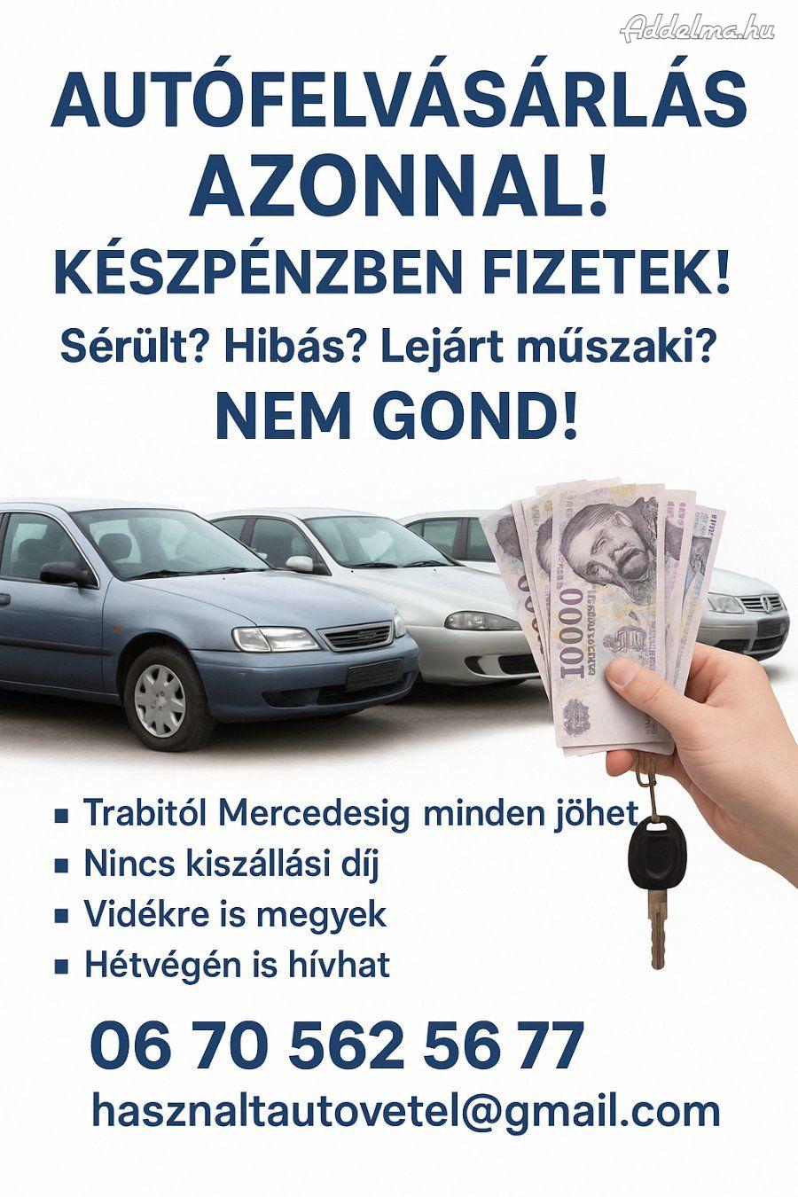 AUTÓFELVÁSÁRLÁS AZONNALI KÉSZPÉNZFIZETÉSSEL!