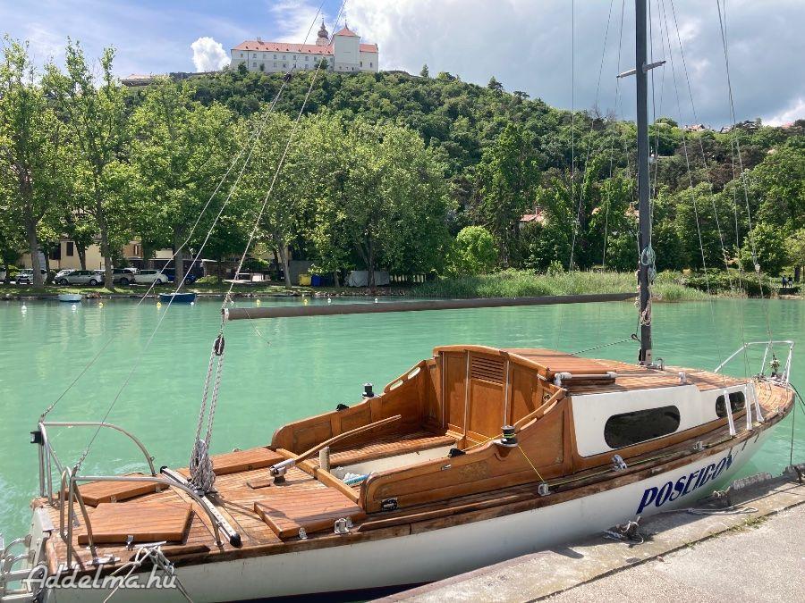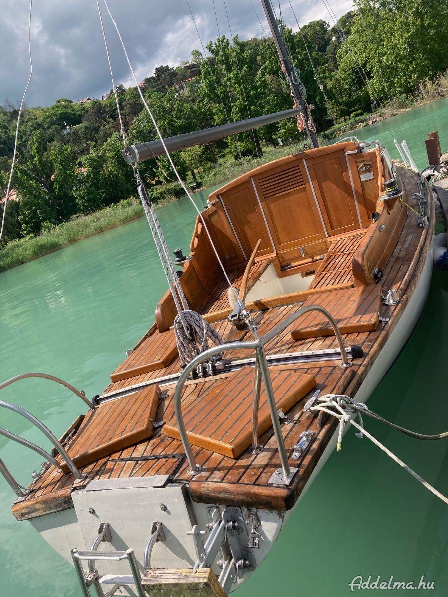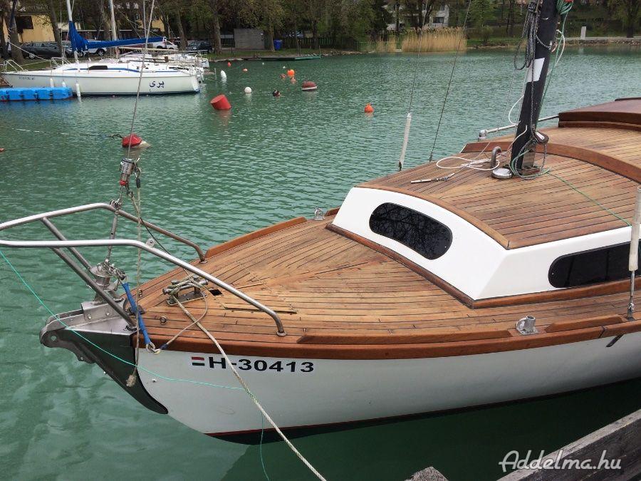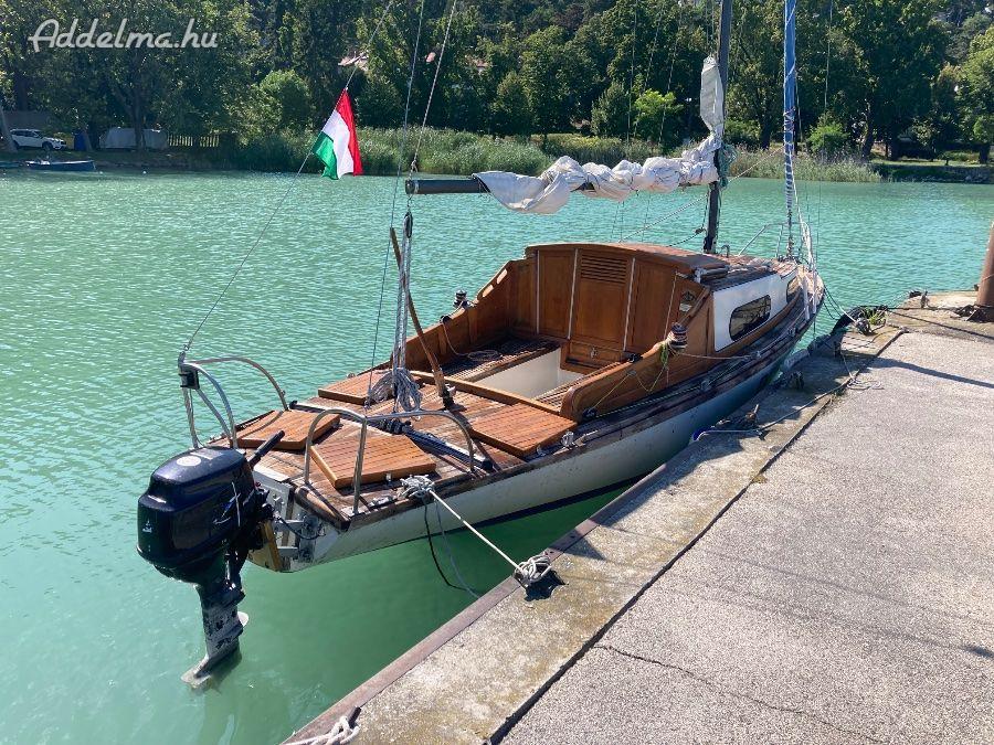 Eladóvá vált egy 8,0 m (26 láb) hosszú, x 2,4 m széles, 10,6 m fixpont magasságú, 1,3 m merülésű, 1,2 t vízkiszorítású, egyedi típusú, műanyag testű, teakfa borítású, belvilágában mahagóni fa szerkezetű és világos (papírfehér) műbőr és vászon kárpitozású, tőkesúlyos vitorlás alapfelszereléssel. A teakfa borítást nem lakkoztuk, hanem évente teak olajjal kezeltük. Jár hozzá egy Parsun F5 7,2 kW négyütemű külmotor (kb. 25 órás összes gépidő), takaróponyva és gumikerekes tároló trailer. Befogadóképessége 6 fő, előírt minimális személyzet: 1 fő. Érvényes vizsga: 2028.08.01. A hajó az 1980-as évek elején készült Nyugat-Németországban. 2013-ban vásároltuk meg egy korábbi balatoni tulajdonostól. A hajó 2015-2016-ban szerkezeti felújításon esett át. Csere is érdekel kisebb vitorlásra (Scholtz 22 Daysailer, stb.) Megtekinthetőség helye: Tihany