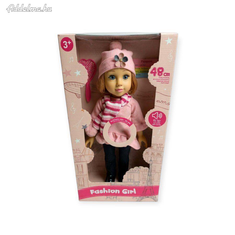 www.enibolt.hu/Fashion-girl-utazo-rozsaszin-zenebarat-baba-48cm-d2109.htm🔗 Link megtekintéseA baba trendi, modern stílusú öltözéket visel: sötét farmernadrágot, fekete bakancsot és rozsdarózsaszín blúzt. Kiegészítői között rózsaszín táska, virágmintás sapka és csíkos sál található, amelyek még különlegesebbé teszik a megjelenését.