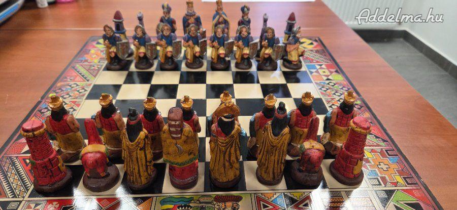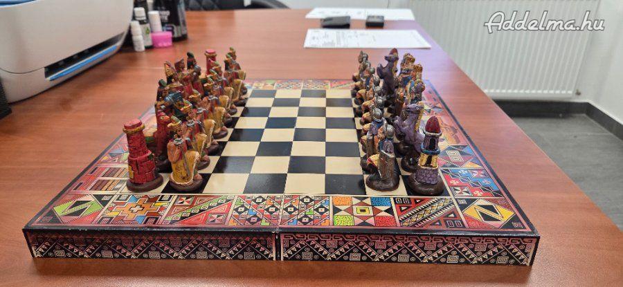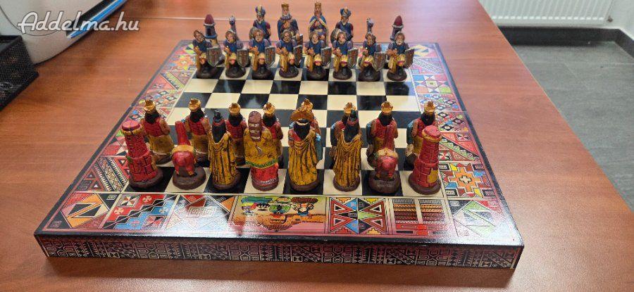Eladó egy egyedi megjelenésű, 40×40 cm-es sakk készlet, amely remek választás mind játékhoz, mind dekorációnak. A tábla stabil, szépen kidolgozott, a figurák teljesek és sérülésmentesek. Ritkán kapható ilyen stílusú darab, igazi különlegesség!