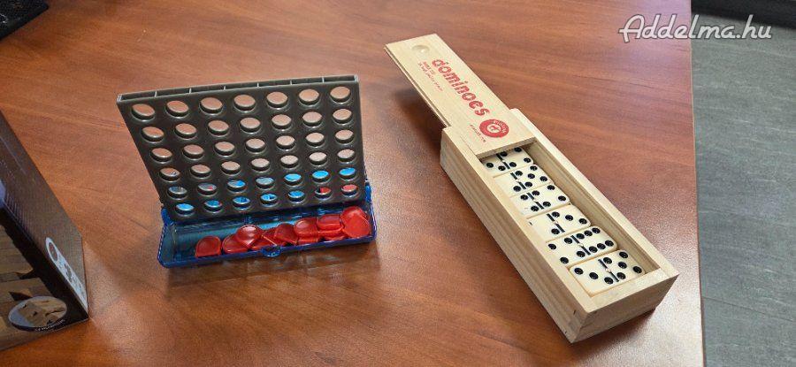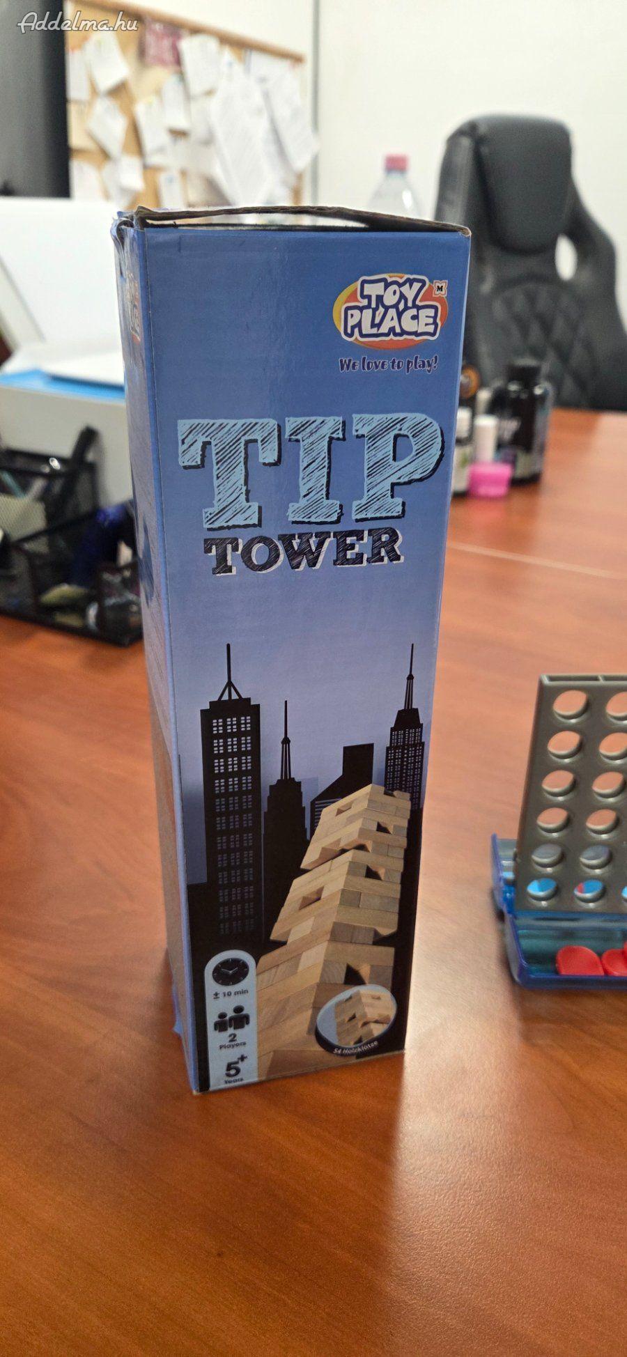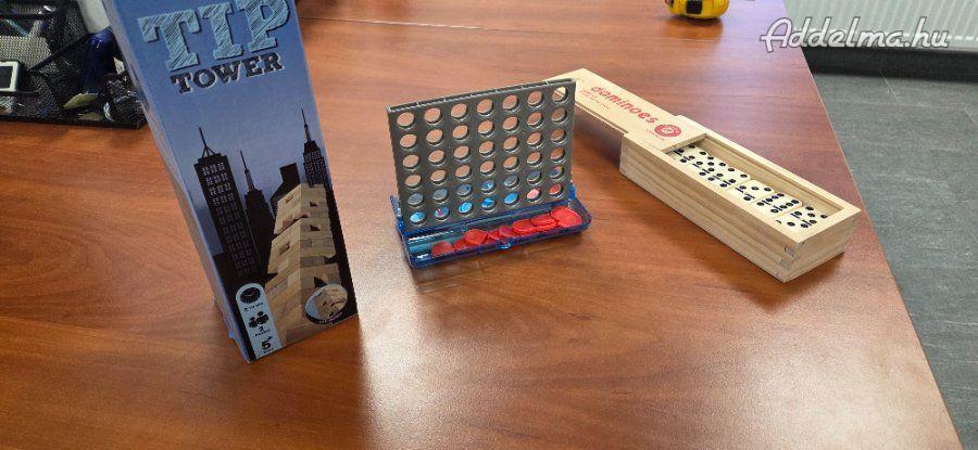 Eladó egy Tip Tower ügyességi toronyjáték, egy összecsukható 4-es amőba és egy fa dobozos dominó készlet.