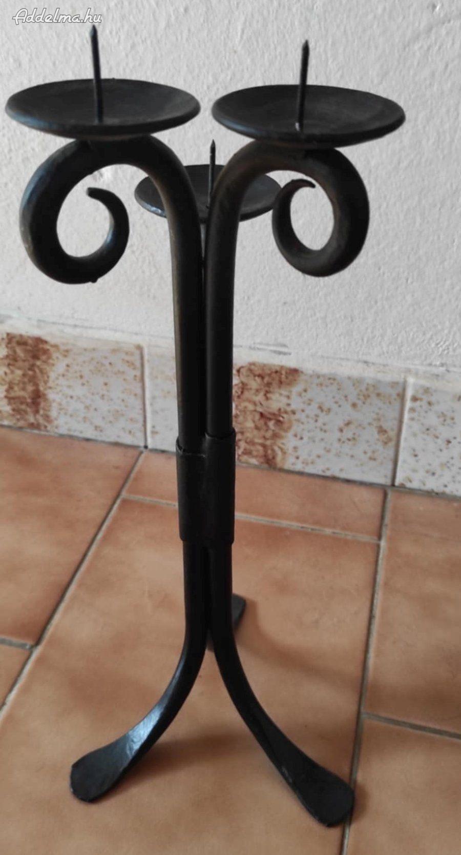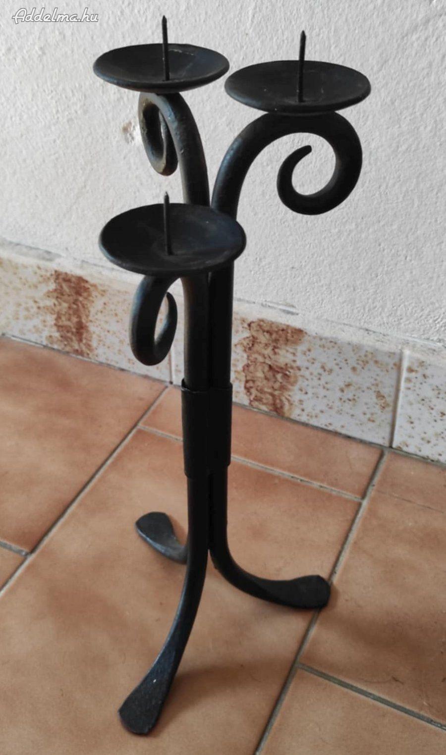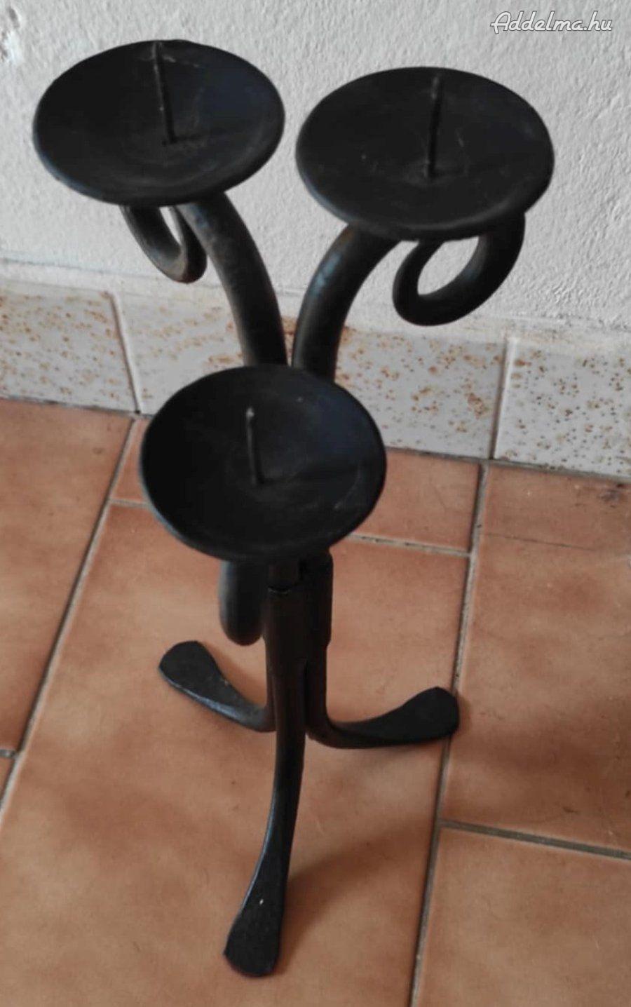 Egyedi designú, kézzel készült kovácsolt vas gyertyatartó eladó. Három darab gyertyát lehet rajta elhelyezni.