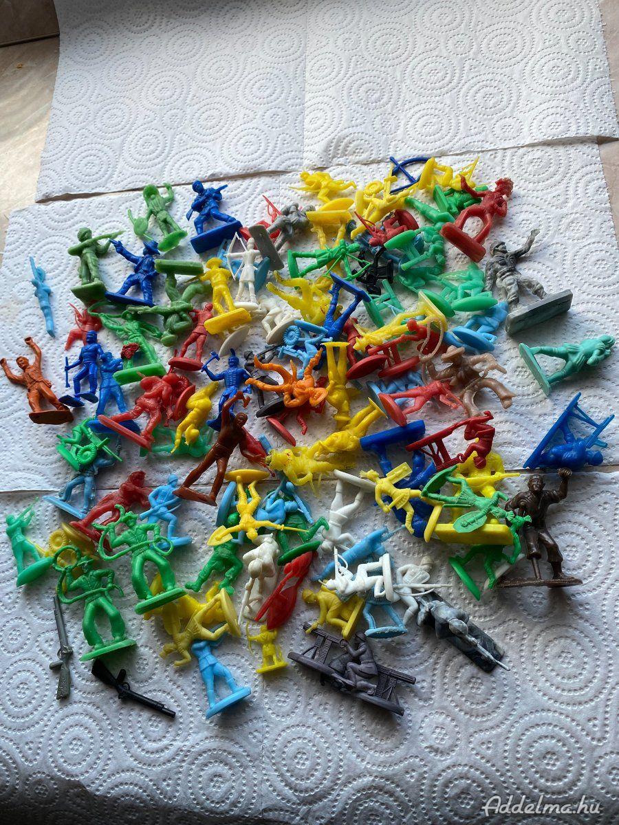 Retró műanyag katonák, különböző méretűek, fajtájúak, összesen 99 db. 100 Ft/ db áron kínálom eladásra.