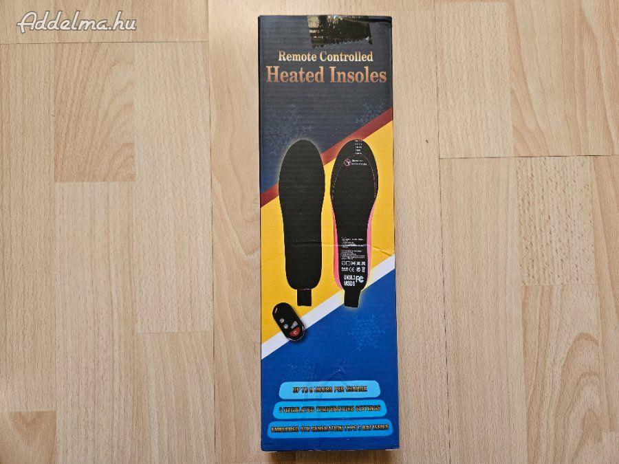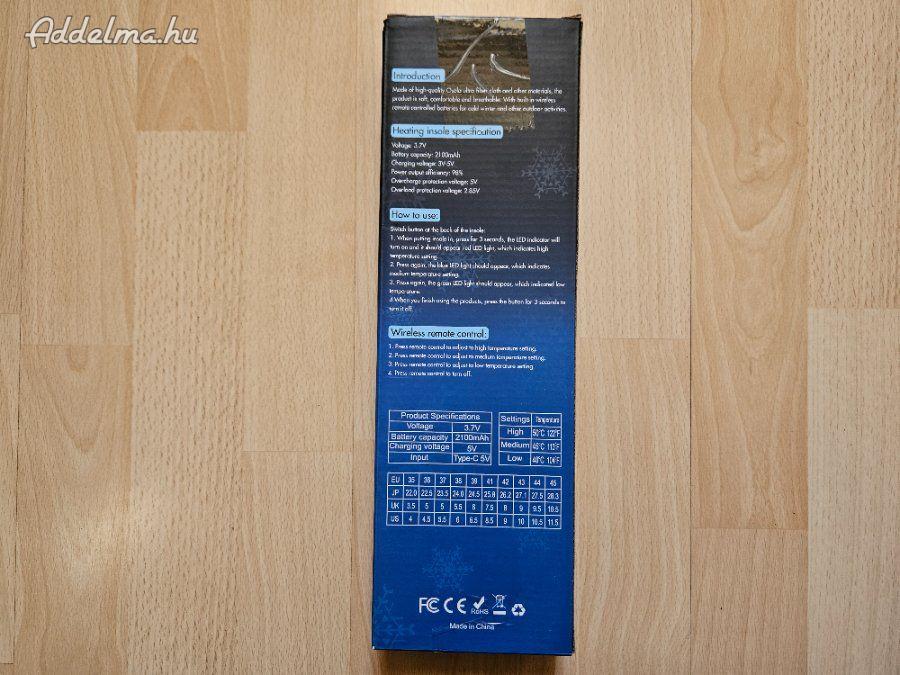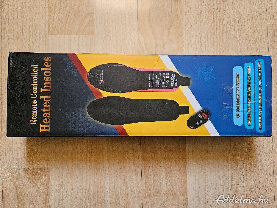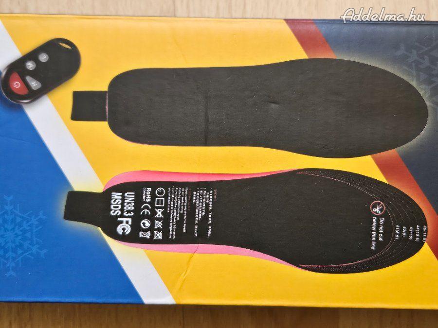 Eladó a képen látható fűthető talpbetét. Használható téli sportokhoz, kempingezéshez, túrákra, utcára, stb, 41-45 közötti lárméretekre jó. Hálózatról vagy powerbankról tölthető (és cserélhető) akkumulátorral rendelkezik, a távvezérlővel szabályozható a 3 hömérsékleti szint (40-45-50C), egy teljes feltöltéssel 8 óra használatot igér a gyártó. Teljesen új, bontatlan, fix áras temék.
