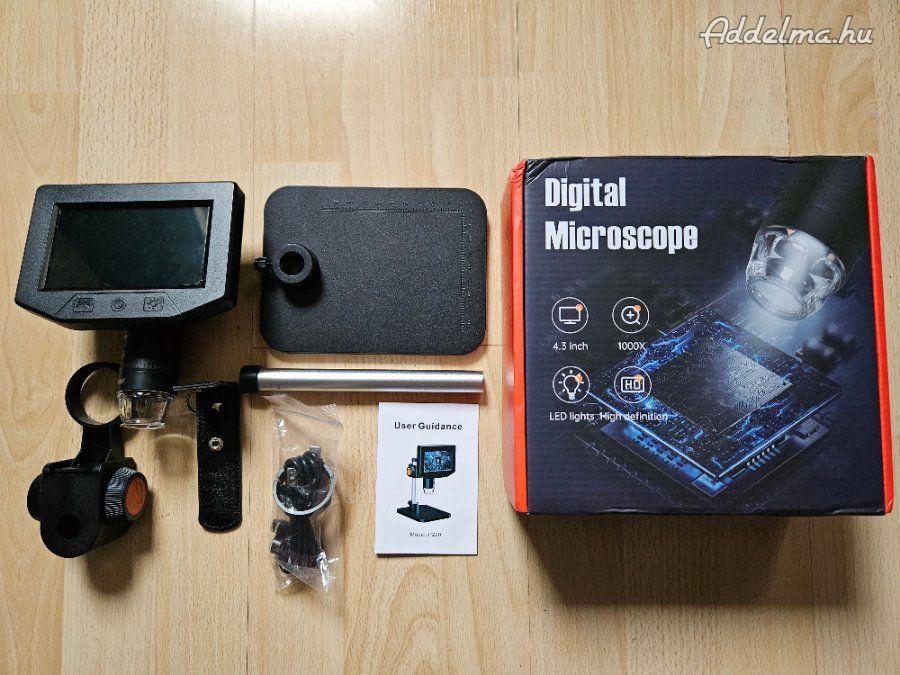 Eladó a képen látható LCD kijelzős digitális mikroszkóp minden gyári tartozékával, dobozában. HD kijelzővel rendelkező tölthető LED-es nagyítós mikroszkóp. Használható pl érmék, áramkörök, bogarak, ékszerek stb vizsgálatához. Teljesen új, fix áras termék. Ajándéknak is kiválló.