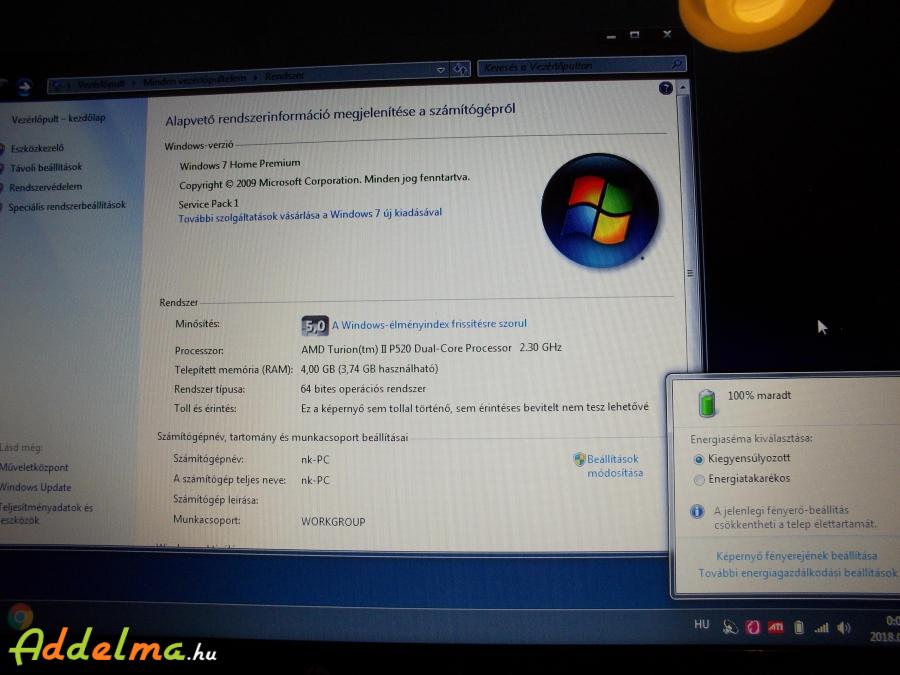 Operációs rendszer Használatra kész Windows 7 64 bit. Akkumulátora kb 1-óra működést tud és adom hozzá a gyári hálózati töltőjét!