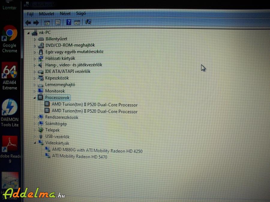 Tulajdonságok: Processzor AMD Turion P520 teljesítménye 2x2,3Ghz, 2db videokártya váltható Grafikus nézettel 1-ATI Mobility Radeon HD 4250, 2-ATI mobility Radeon HD 5470, Vincseszter 250Gb 100/100, Ram 4Gb DDR3, Beépített Webkamera és Mikrofon,, HDMI csatlakozó, WIFI, 3db USB port, DVD optikai meghajtó, Gigabit LAN, Hang be és kimeneti csatlakozók, D-Sub, Kijelző 1366X768 felbontású fényes kijelző!