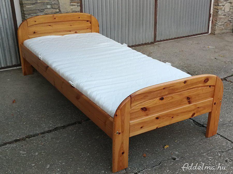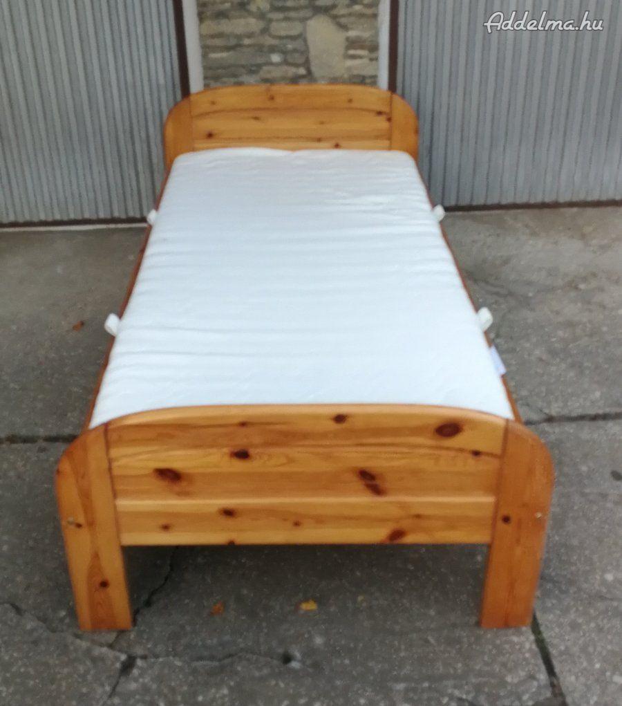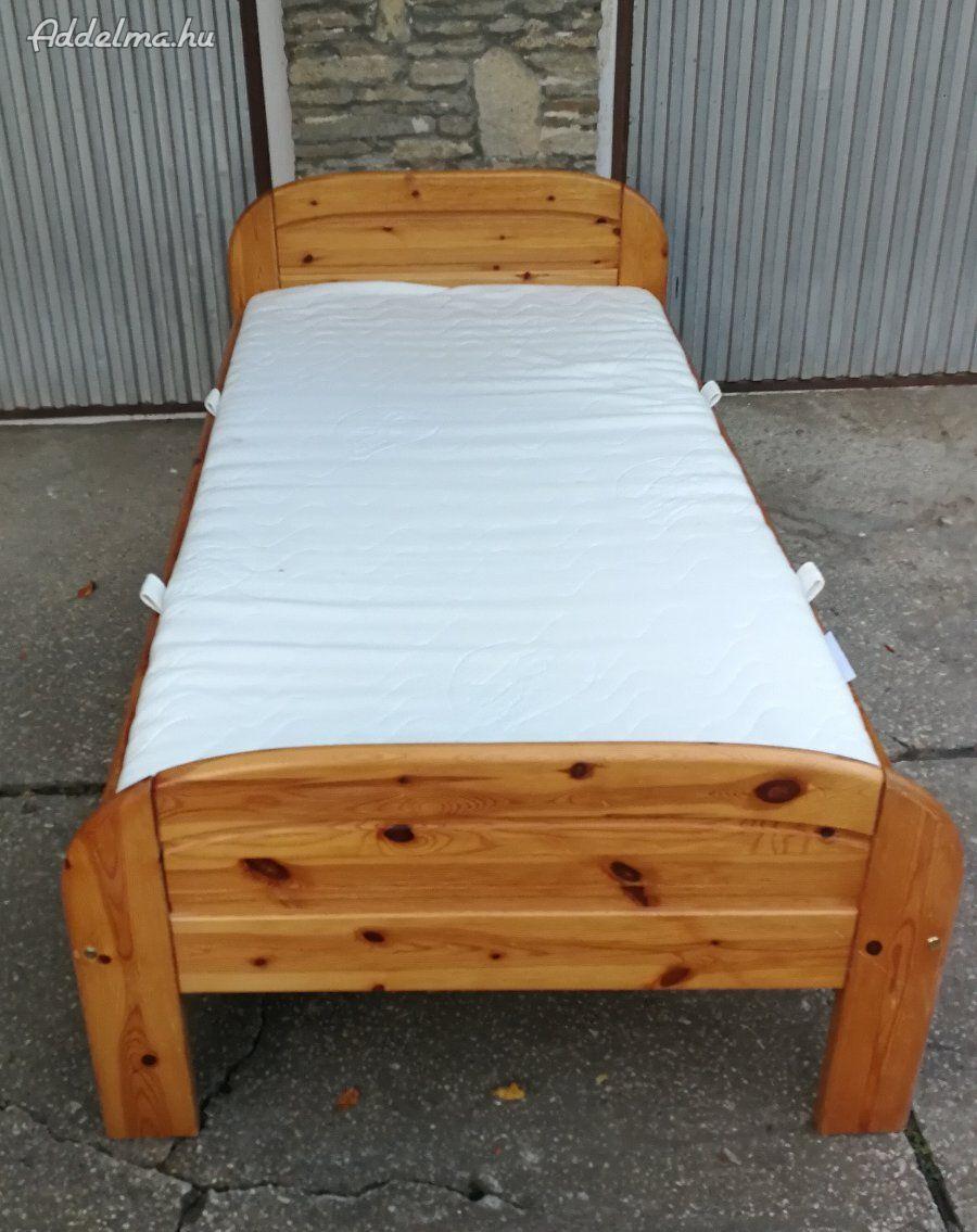 Jó állapotban lévő fenyő ágy 90x200cm, ráccsal, jó állapotú ,mosható huzatú matraccal eladó a képen látható állapotban.