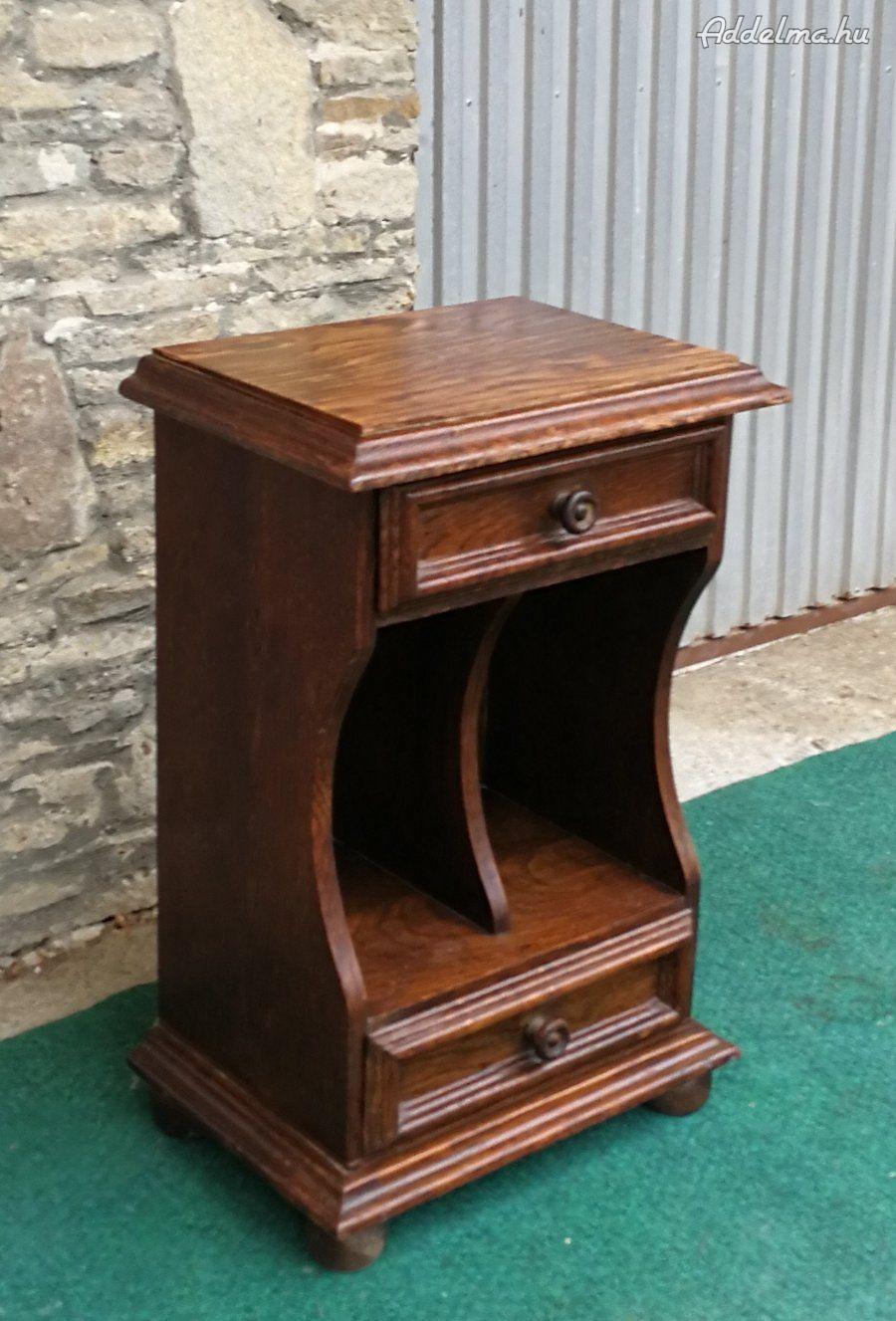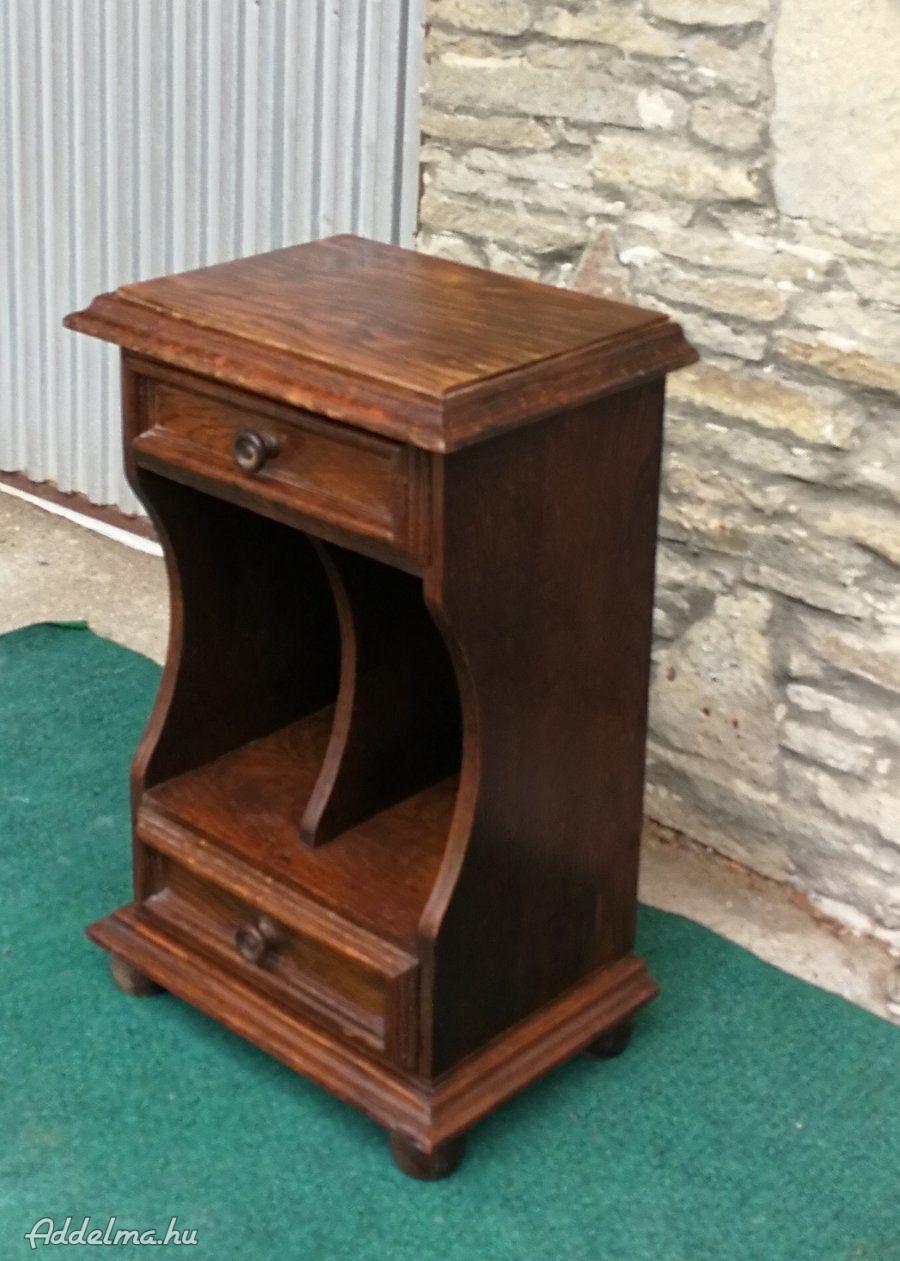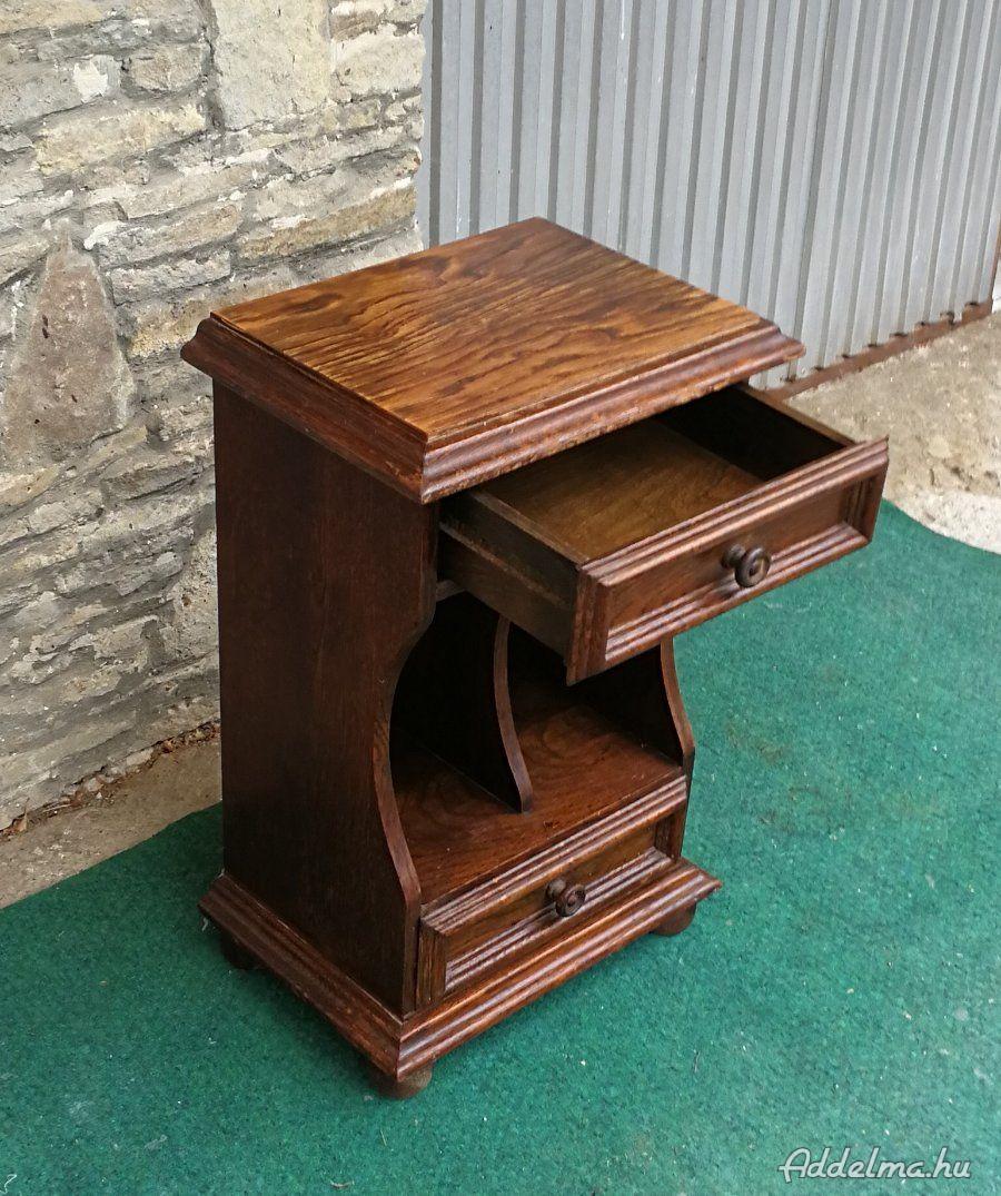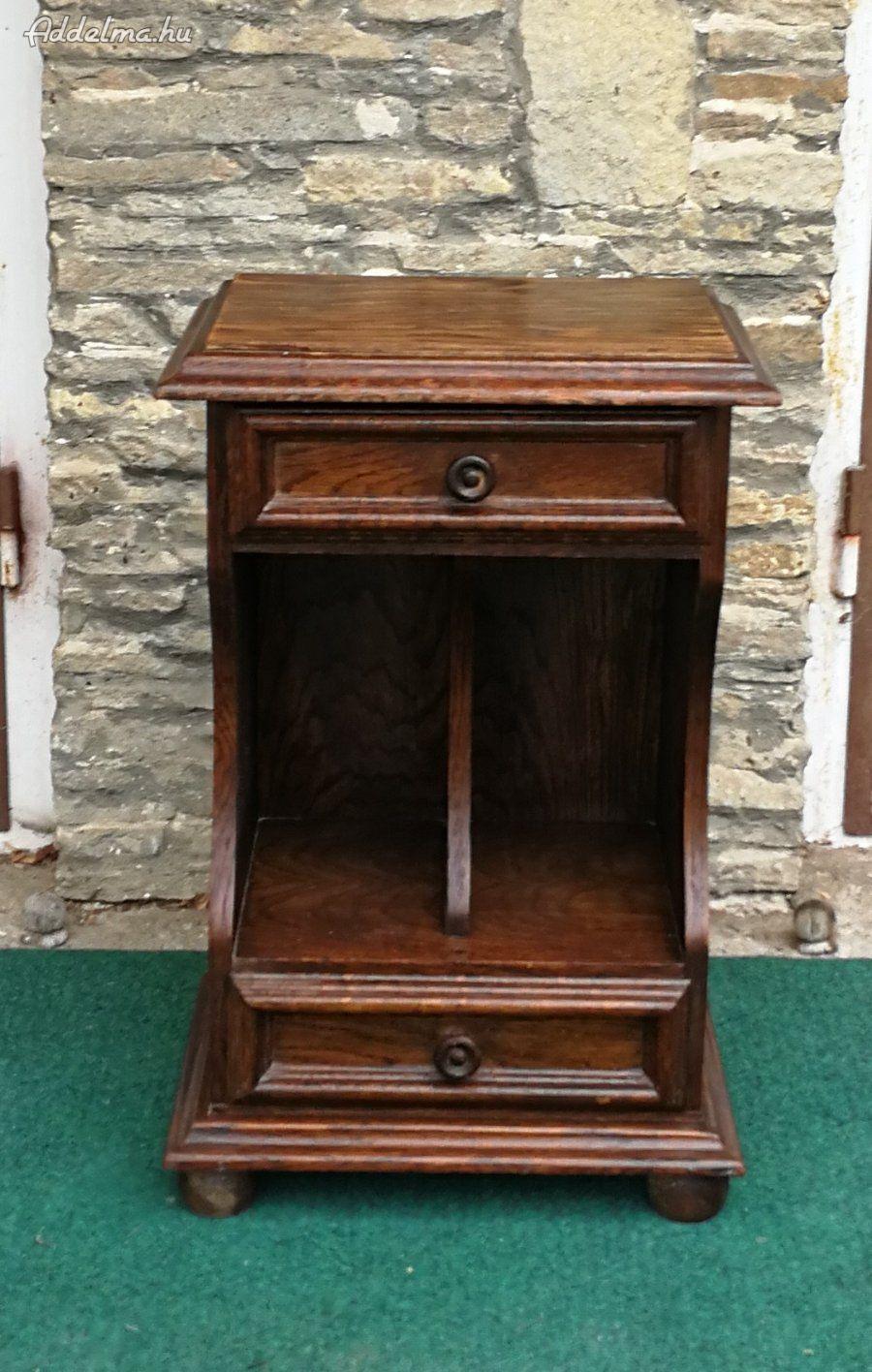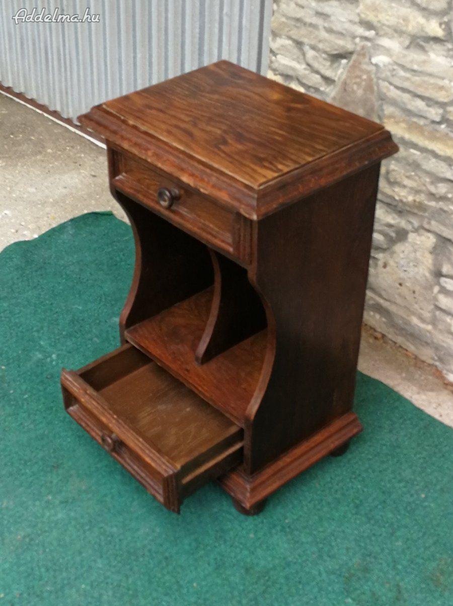 Tölgy furnérozású kis újságtartós kis szekrény , két fiókkal eladó a képen látható állapotban.