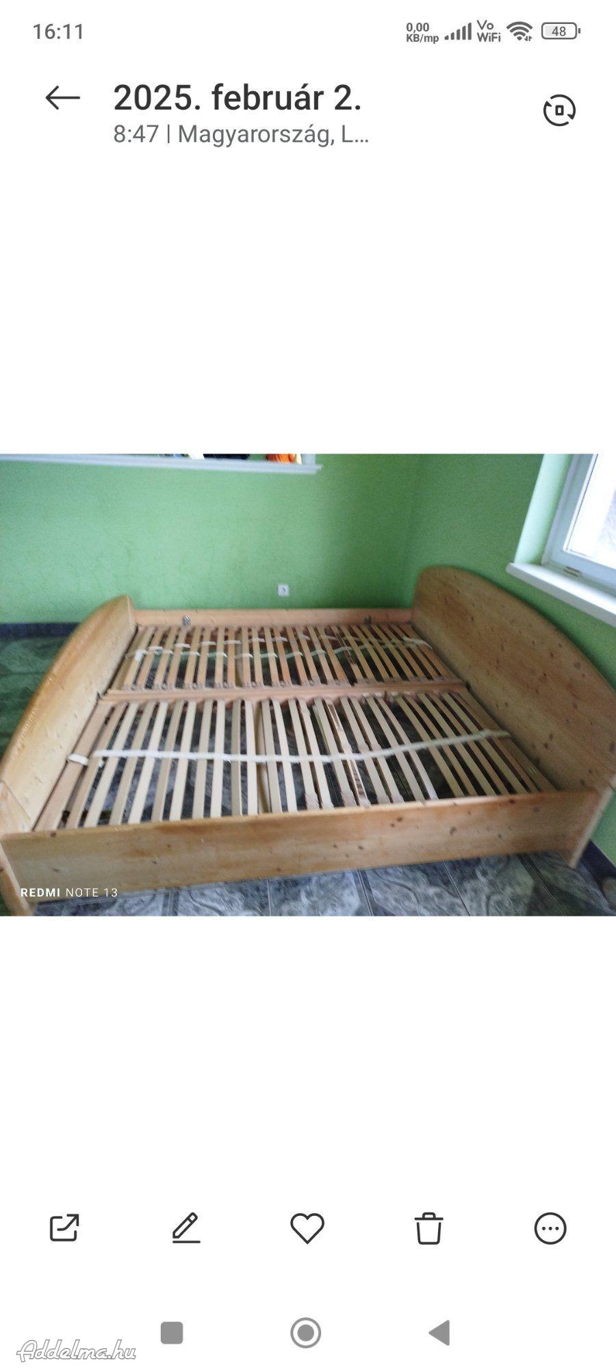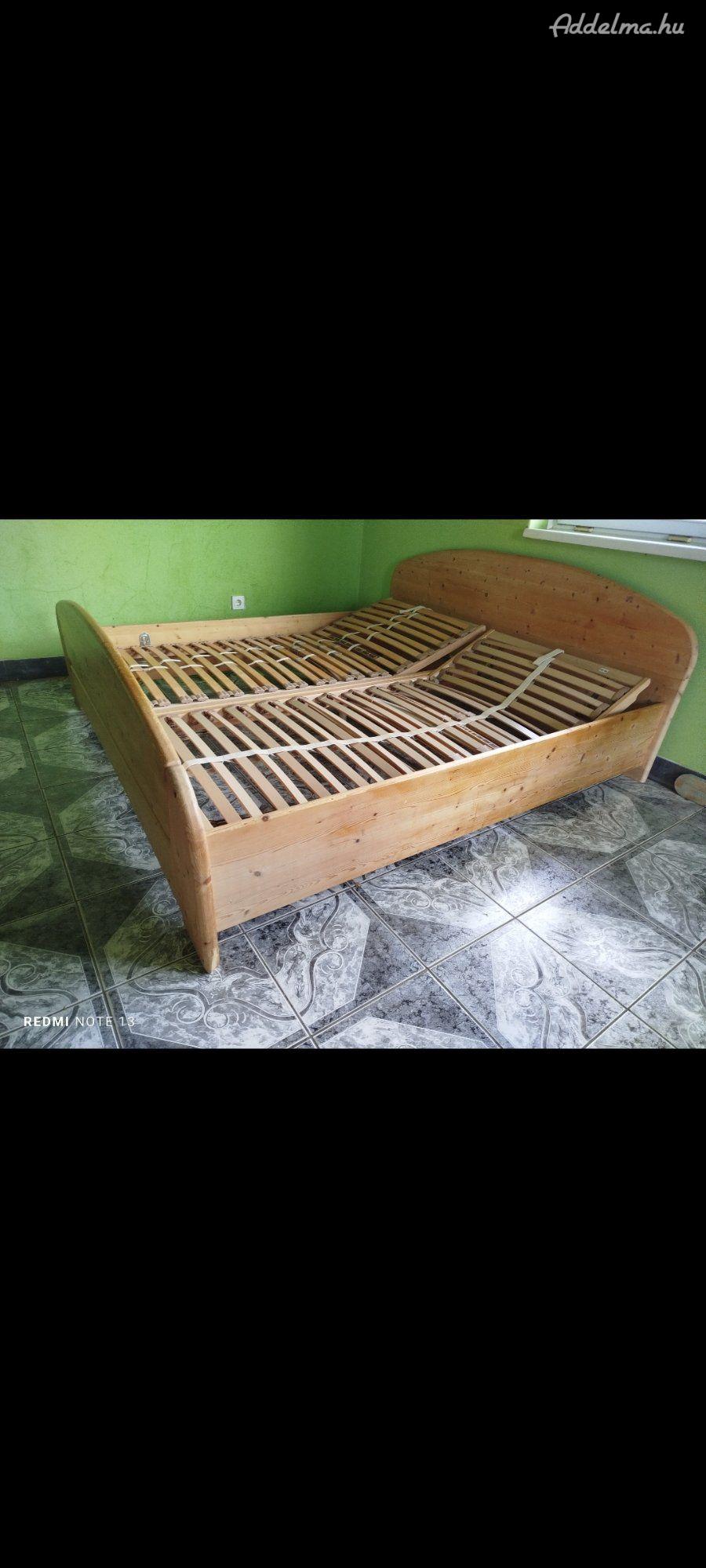 Osztrák natúr borovi fenyő keret állítható ágyrácsokkal mérete 90x190cm fekvő felületű prémium minőségű csúcskategóriás jó állapotú antiallergén memóriahabos 25 cm vastag olasz matracokkal frissen tisztítva 85000ft