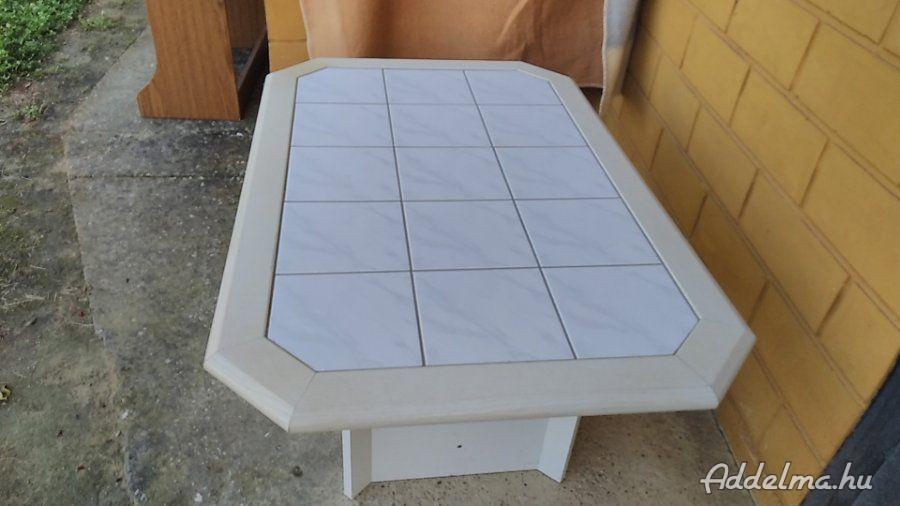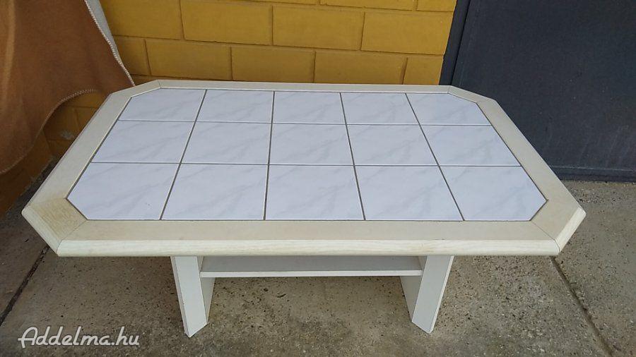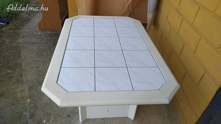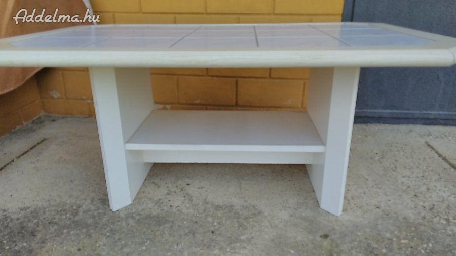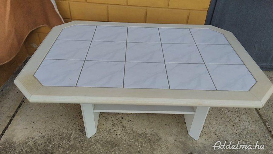 Eladó a képen látható dohányzóasztal. Az asztal közepe csempével van kirakva.