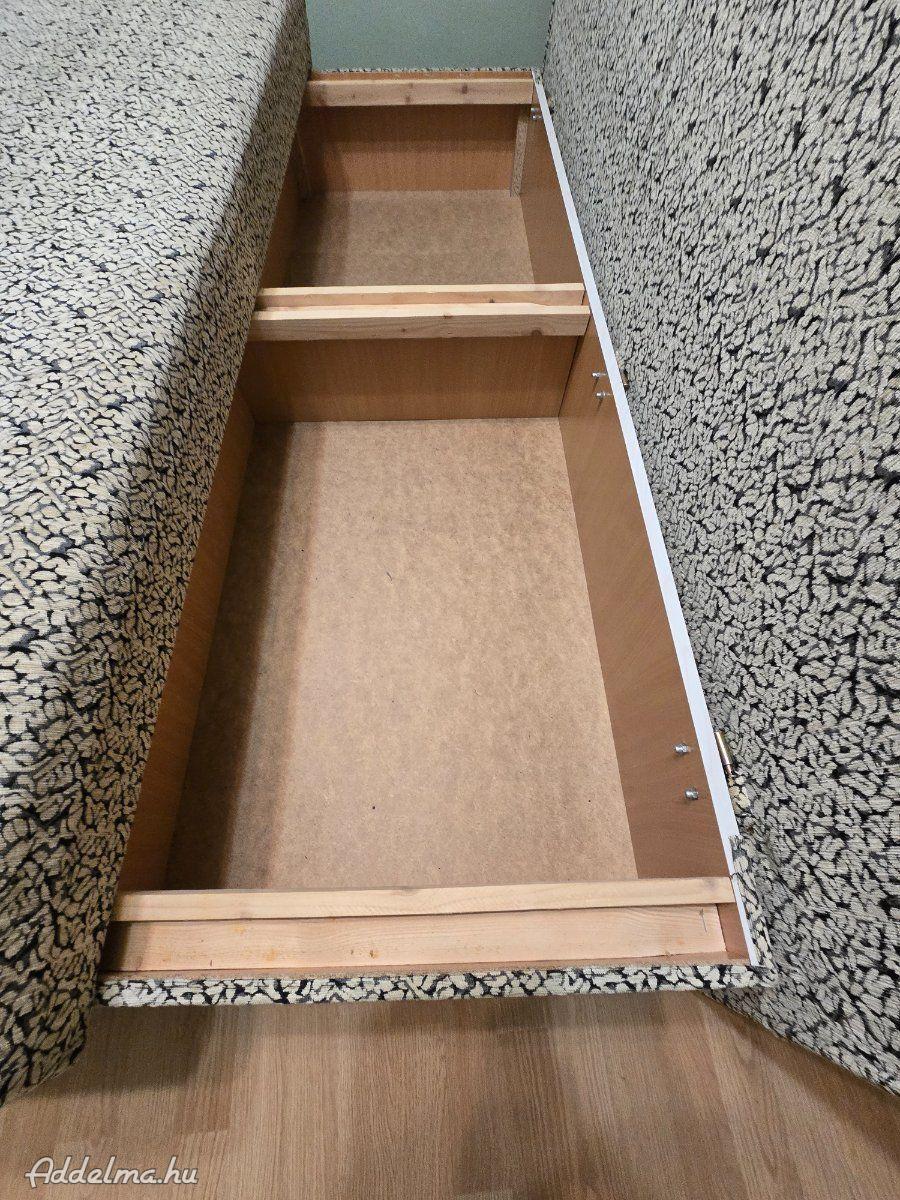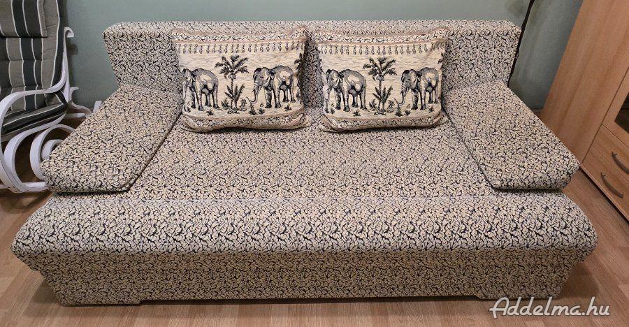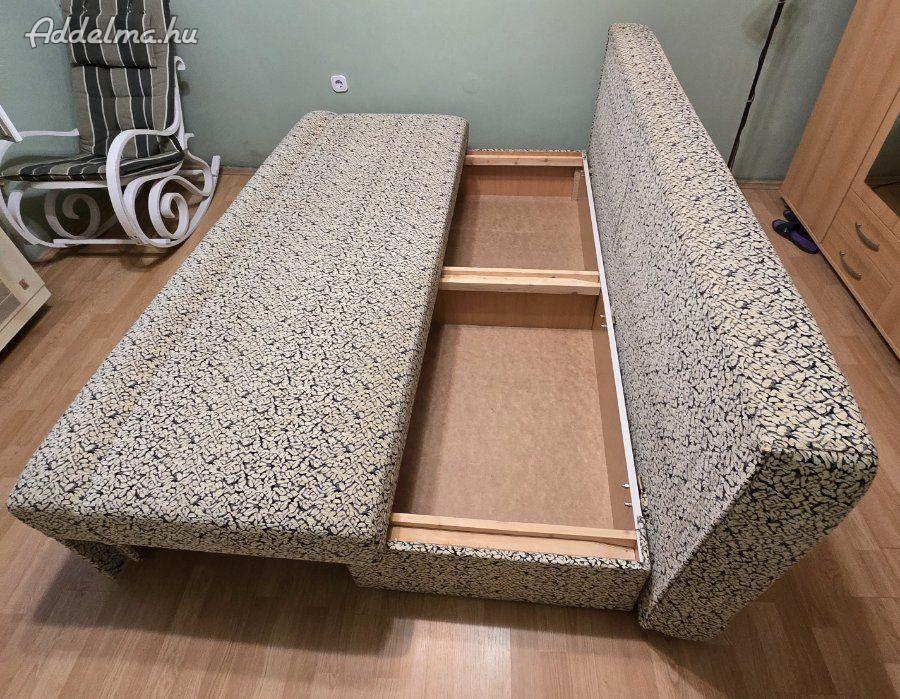 Kétszemélyes kihúzható kanapé, ágyneműtartóval.
