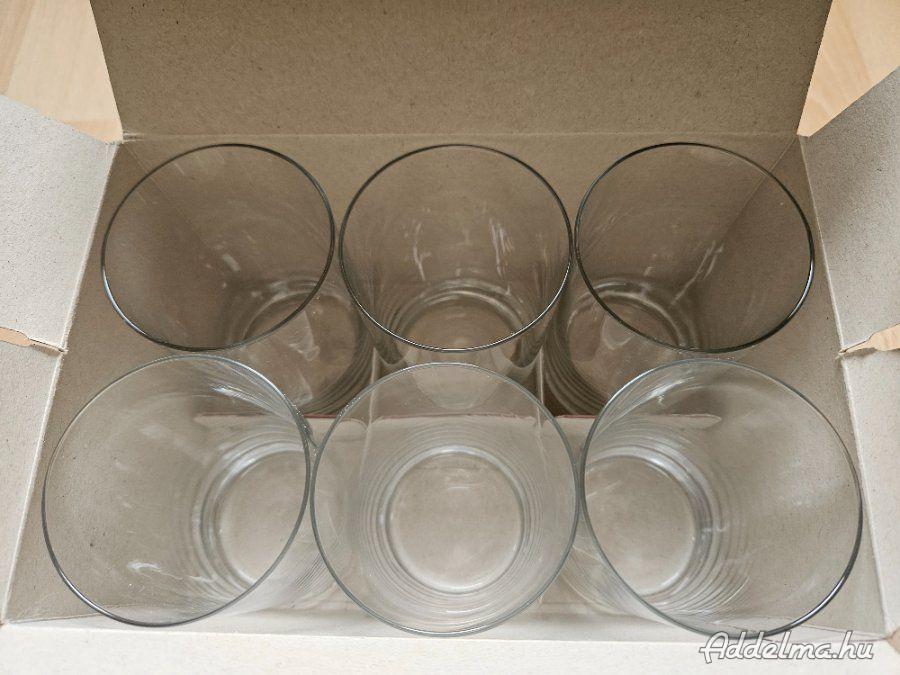 Eladó a képen látható szép 6db-os hibátlan vizespohár készlet dobozában. A 6db pohár teljesen új, a megjelölt fix áron vásárolható meg. Méretük 6,5x10,5cm (szélxmag).