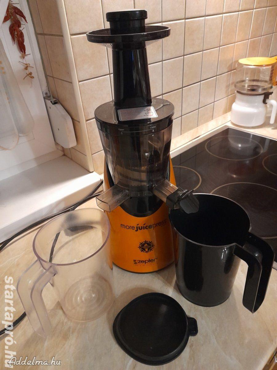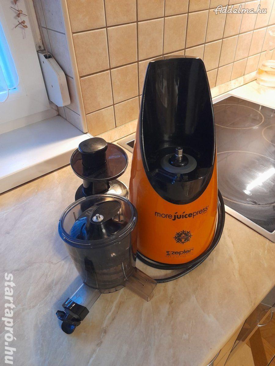 Kihasználatlanság miatt eladóvá vált egy Zepter More Press Juice minőségi lassú présgép az összes alapvető tartozékával együtt. Célka, dinnye, banán, gyümölcslé, zöldségprés, akár mandulatejet is készít. Mindenféle lé préselésére alkalmas tartozékokkal. A garancia már nem érvényes rá, de kiválóan működik, alig használt. 40%-al több kipréselt lé a lassú működési technológia miatt, mint az alacsonyabb kategóriájú termékeknél. Adott tartozékának használatával jégkrémet is tud készíteni vele a melegebb napokon, pl eper, banám stb. Ára akciós: 130.000,-