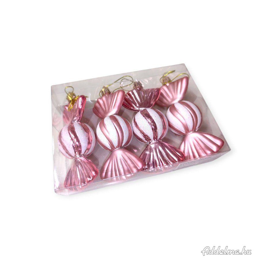 Rózsaszín cukorka karácsonyfadísz készlet fehér