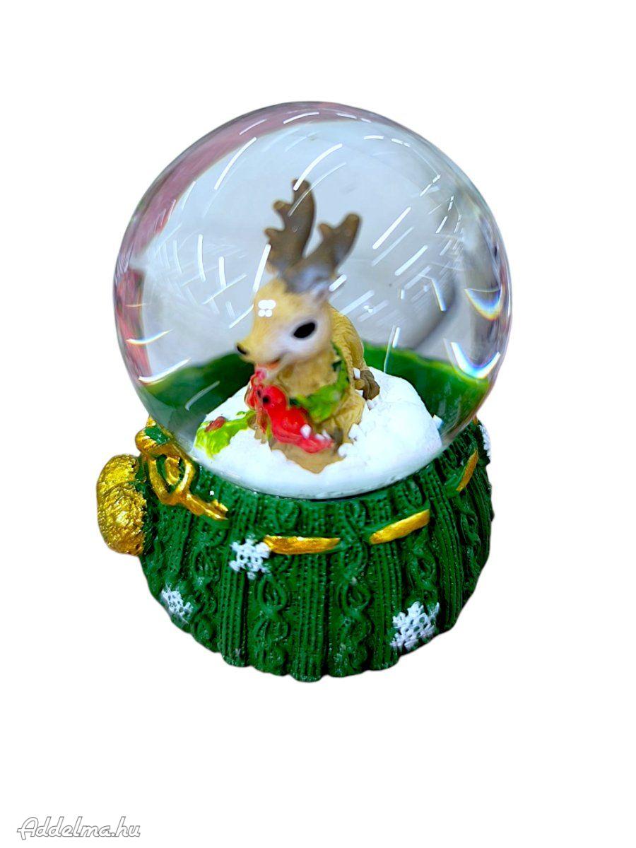 Karácsonyi hógömb rénszarvassal zöld alapon 6cm