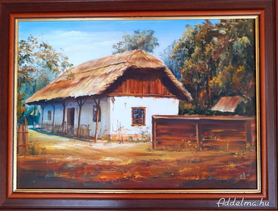 Eladó Maksai János festőművész zsűrizett festménye, Vidéki udvar.