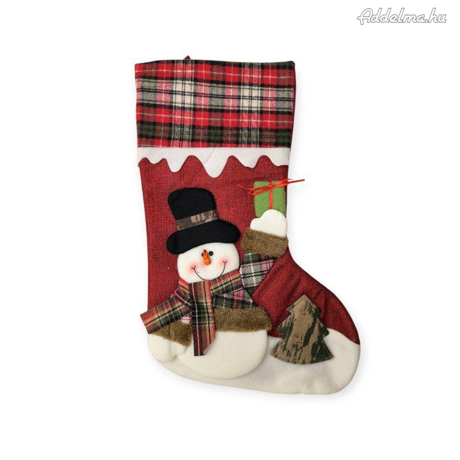Piros karácsonyi mikuláscsizma hóemberrel fekete sapkával 45cm