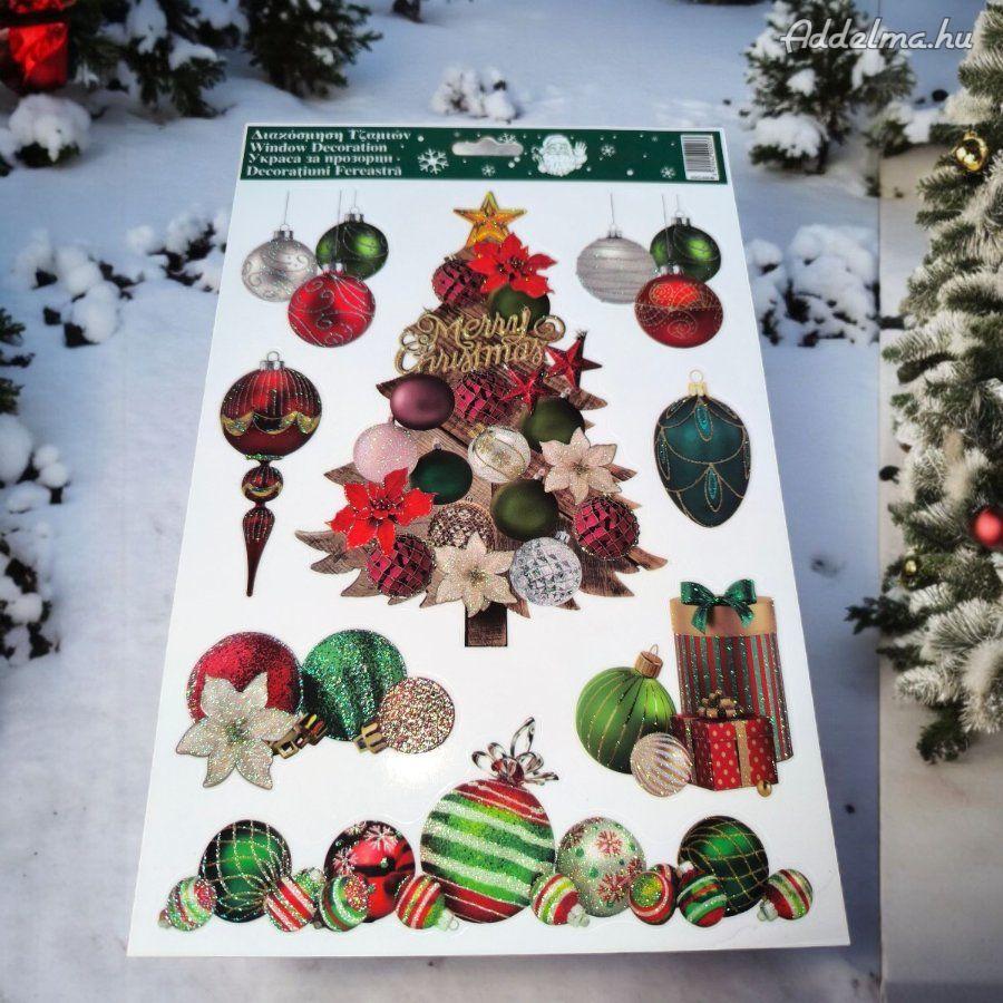 Csillogó karácsonyfa vintage gömbös karácsonyi ablakmatrica