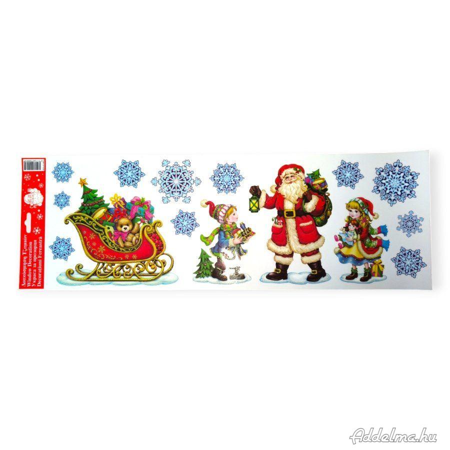 Mikulás és gyerekek karácsonyi matrica – csillogó ünnepi dekoráció