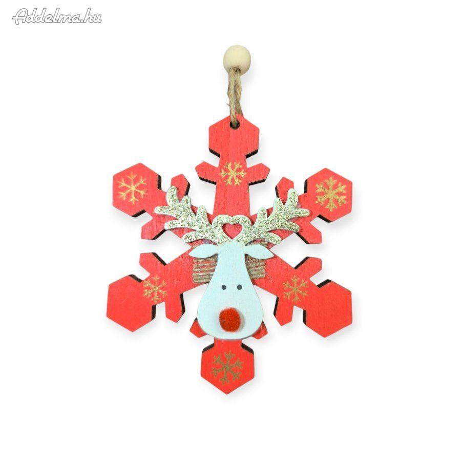 Fa karácsonyfadísz piros pehely fehér szarvassal (10 cm)