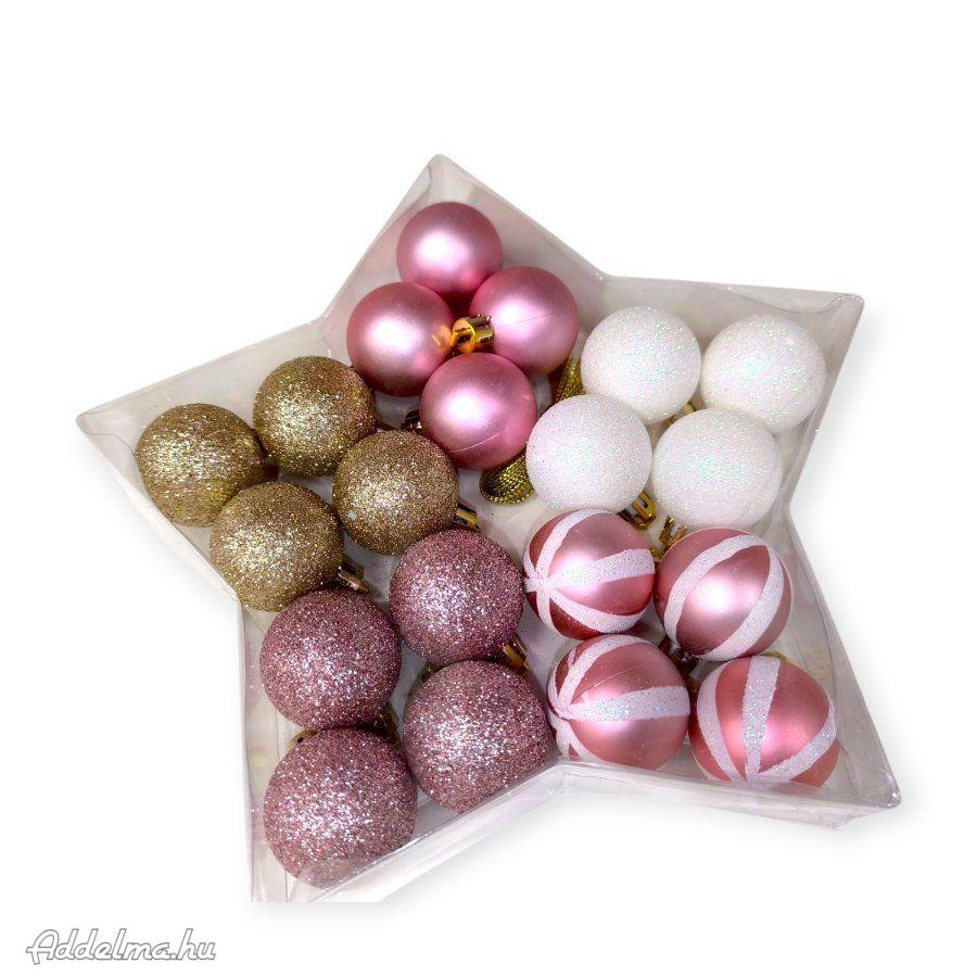 Rózsaszín-fehér pezsgő karácsonyi gömb készlet 4cm – 20db