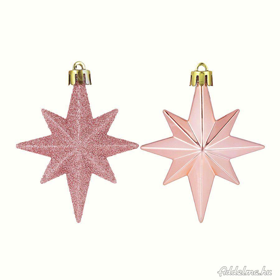 Rózsaszín csillogó karácsonyfadísz csillag szett 8cm – 12db