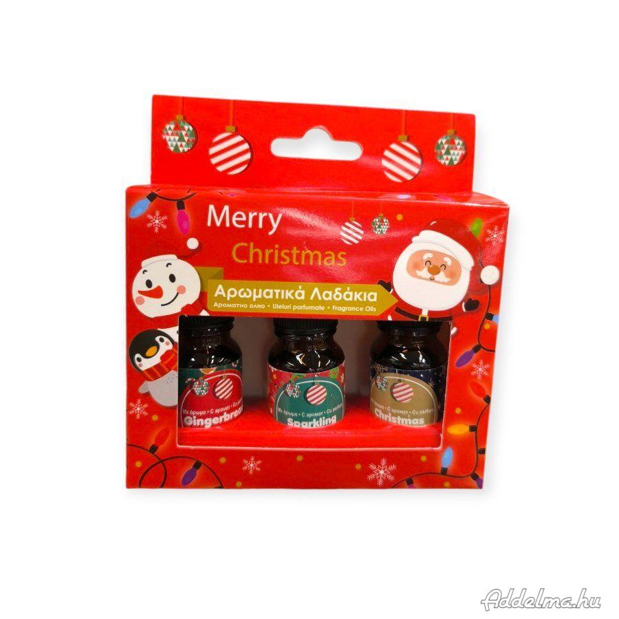 A készlet három különböző karácsonyi illóolajat tartalmaz: pezsgő fahéj, karácsonyi hangulat és mézeskalács.