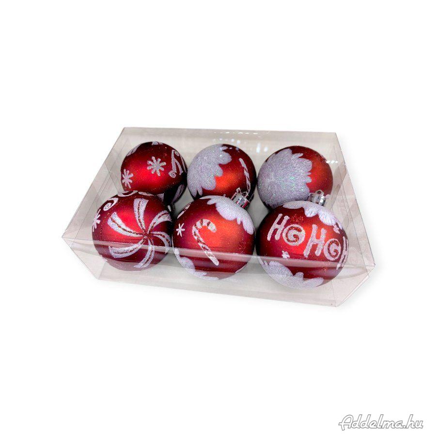 Piros-fehér karácsonyi gömb szett HoHoHo Joy 8cm - 6db