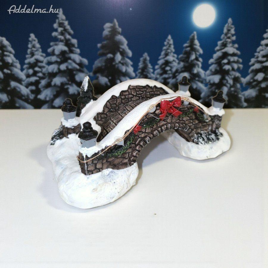 Karácsonyi falu dekoráció híd LED világítással 15 cm