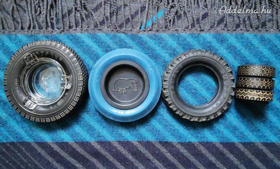 Eladó Taurus márkajelzésű, retró hamutartó és Taurus gumi abroncs és egy kínai gumis hamutartó. Csak együtt eladók!