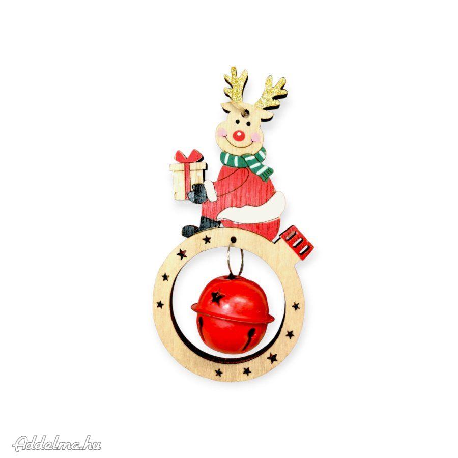 Fa karácsonyfadísz földgömb szarvassal és haranggal (11 cm)
