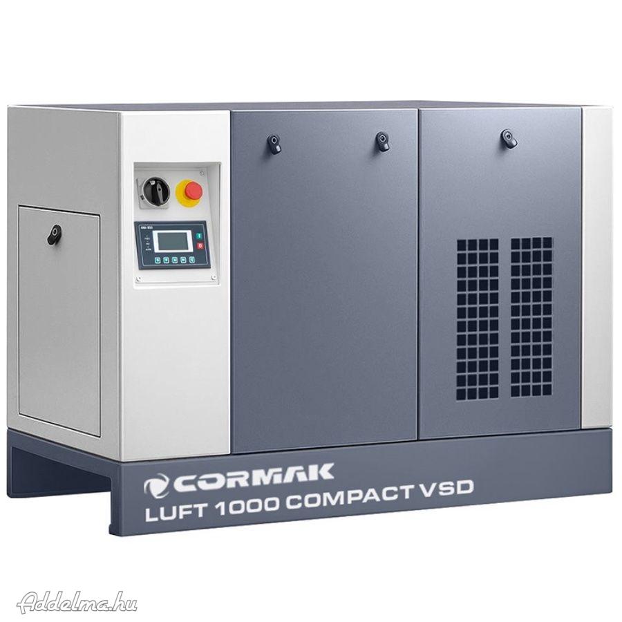 LUFT 1000 VSD csavarkompresszort és az N10S hűtött levegőszárítót tartalmazó készlet. A lengyel CORMAK márka LUFT sorozatú csavarkompresszora a pneumatikában alkalmazott legmodernebb megoldásokat képviseli, kiváló minőségű anyagok és alkatrészek használatával kombinálva. Az alacsony üzemeltetési költségek, a könnyű kezelhetőség, az ergonomikus és masszív felépítés, valamint a készülék magas hatásfoka hatékony és problémamentes működést garantál.