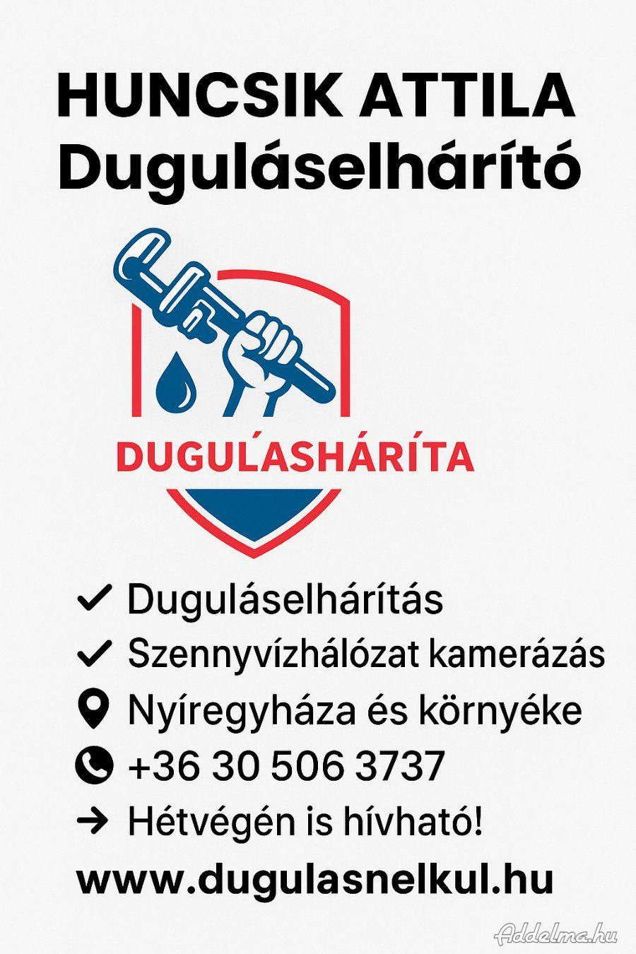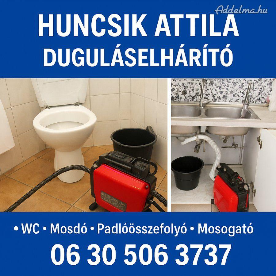 Huncsik Attila Szaki Duguláselháritó konyha padlóöszefolyó kézmosó Wc stb tisztitása korszerü géppel Hétvégén Vidékre is. Számlaképes vagyok.