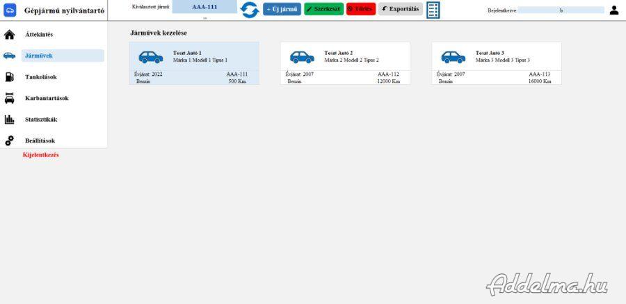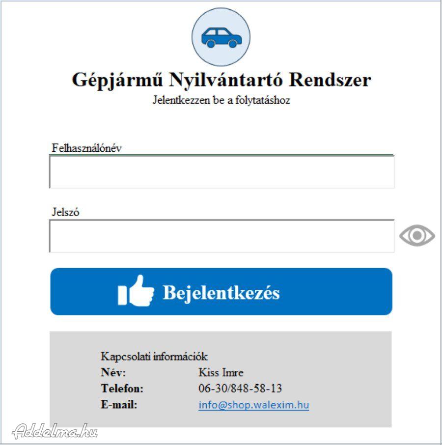 Több jármű egyidejű nyilvántartása: rendszám, gyártmány, típus, márka, gyártási év és egyéb technikai adatok részletes tárolása.