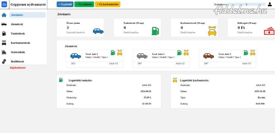 Szűrés és keresés: gyors szűrés járműtípus, évjárat vagy egyéb paraméter alapján.