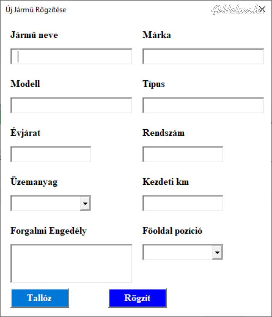 Automatizált adatbevitel: új jármű felvitele, adatmódosítás és archiválás gombnyomásra.