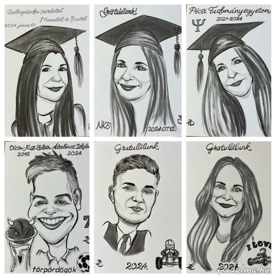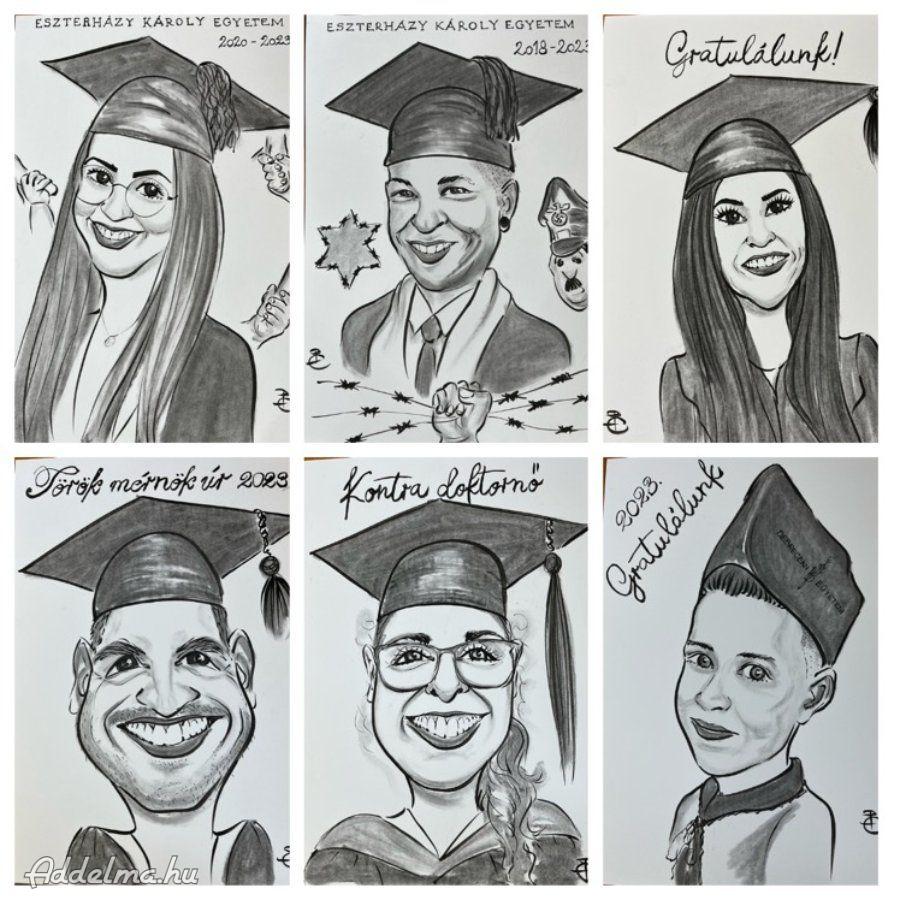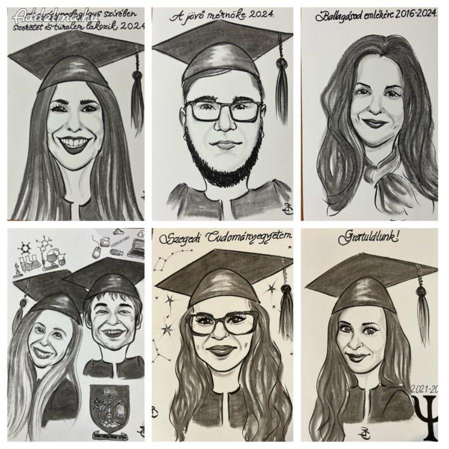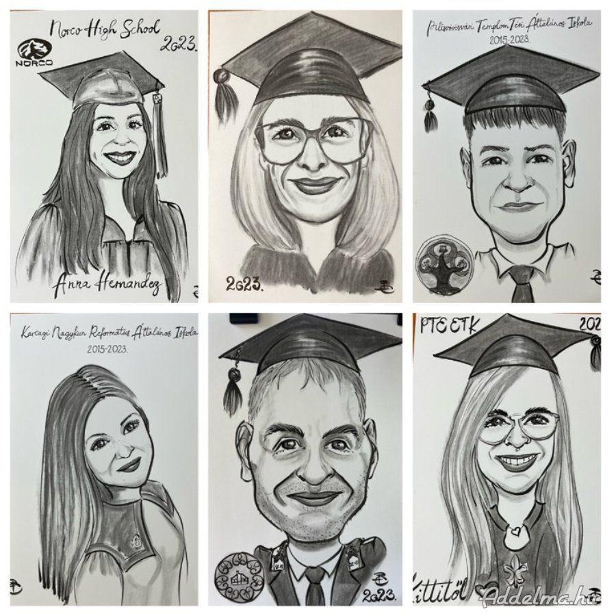 Ballagásra, diplomaosztóra a tökéletes, egyedi, személyre szabott, kedves ajándék egy karikatúra, ami fotó alapján készül, az ajándékozottnak örök emlék.